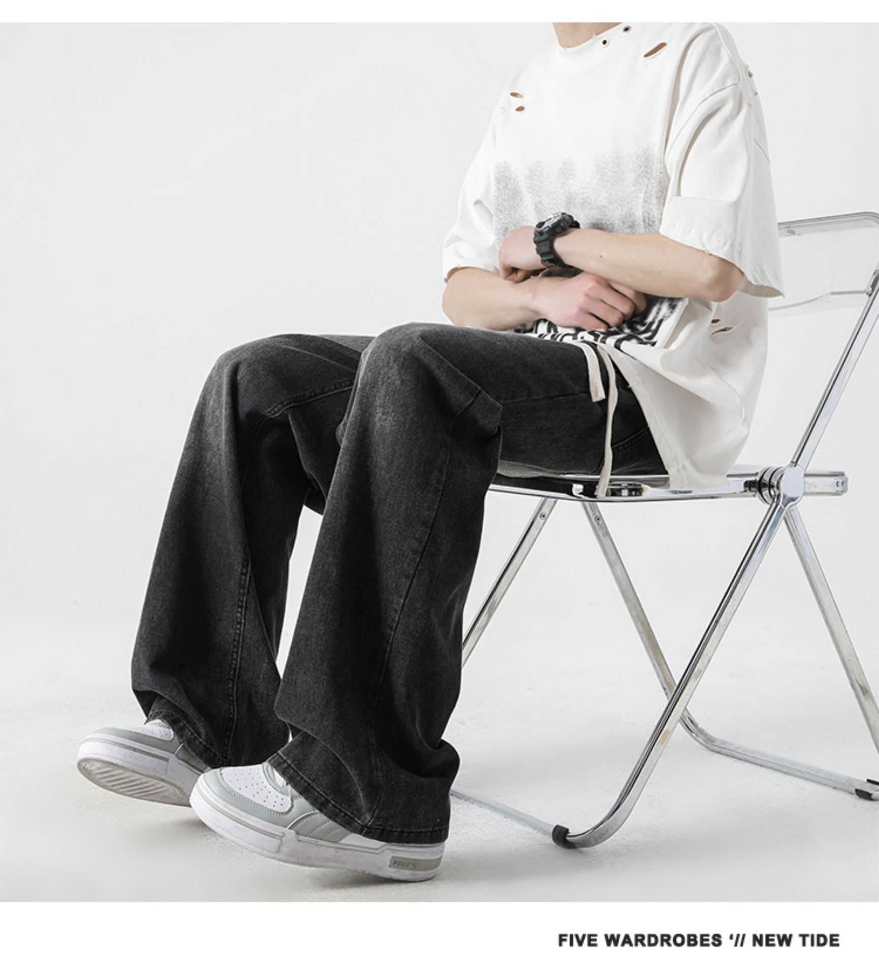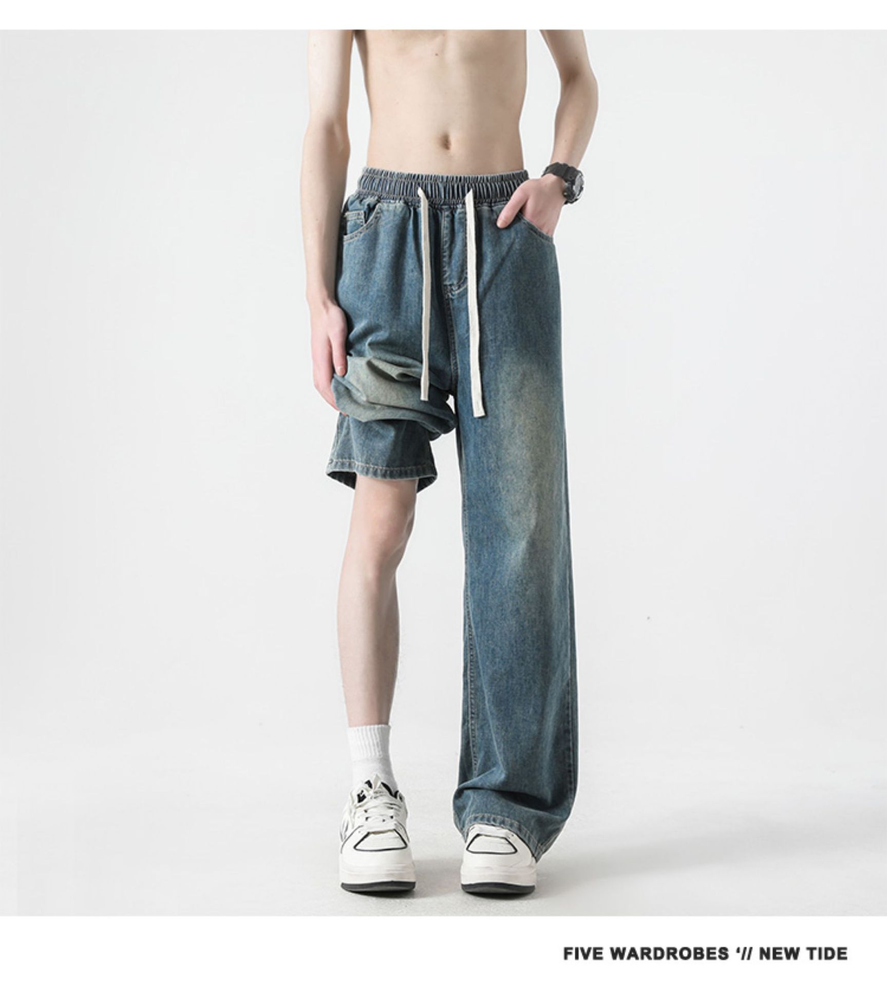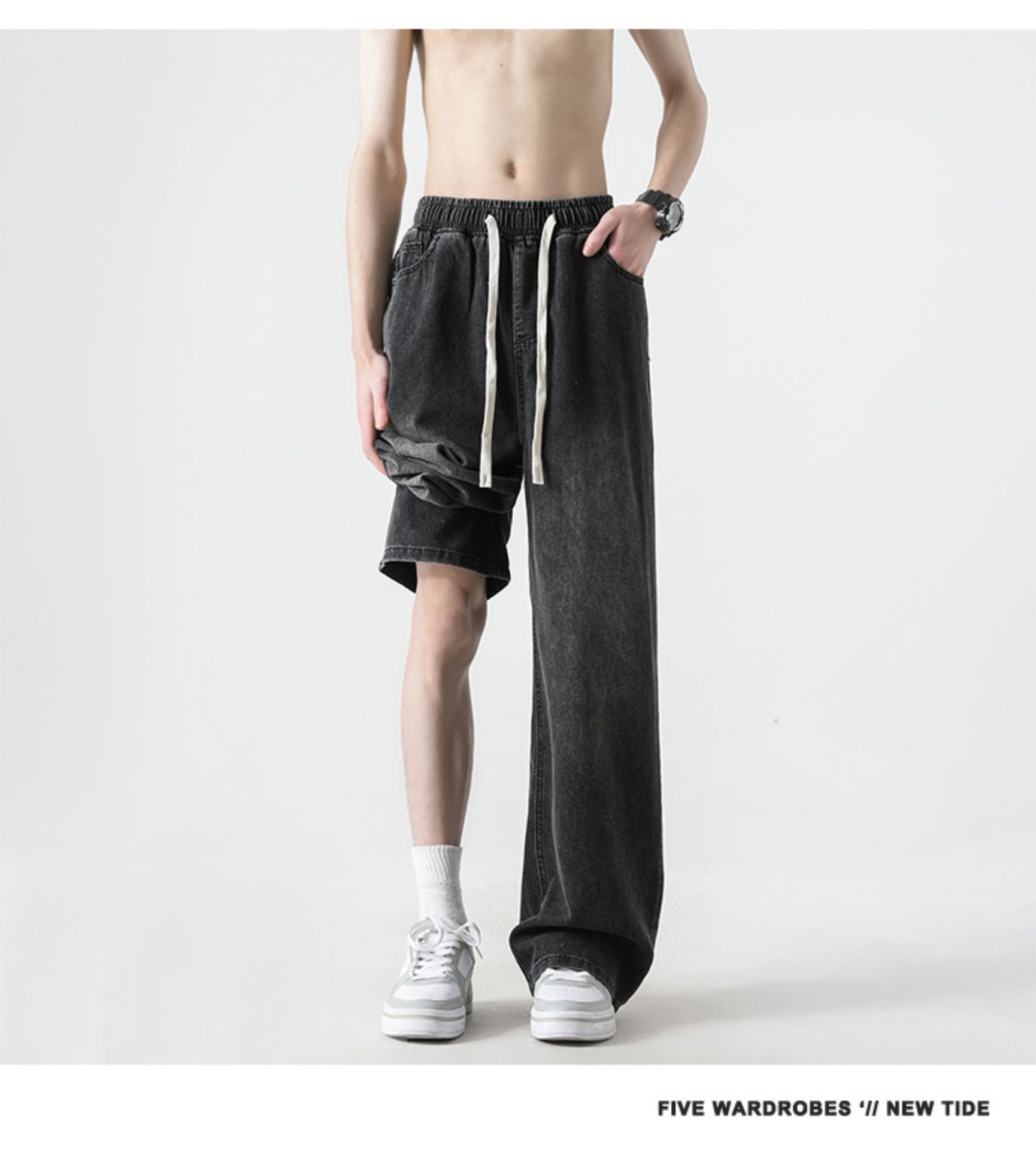 아이스 실크 청바지 남성 여름 얇은 2025 새로운 루즈 스트레이트 팬츠 리오셀 텐셀 드레이프 와이드 레그 팬츠