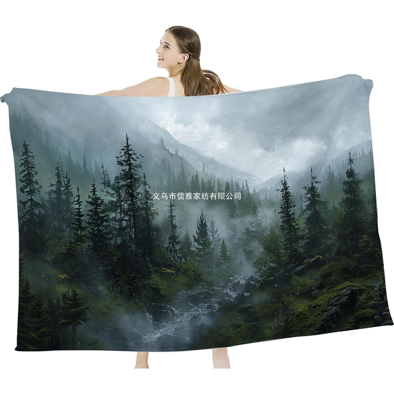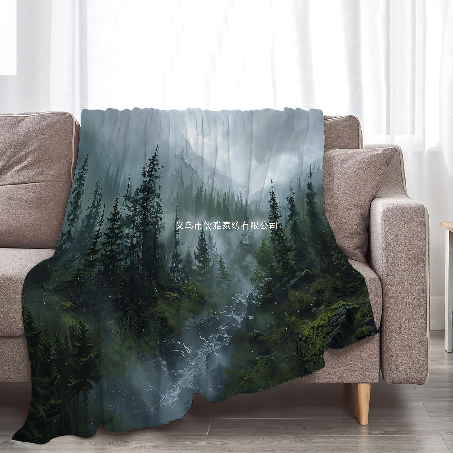 플러시 플란넬 녹색 자연 숲 안개 풍경 담요 거실 침실 소파 사무실 담요스토어 가기