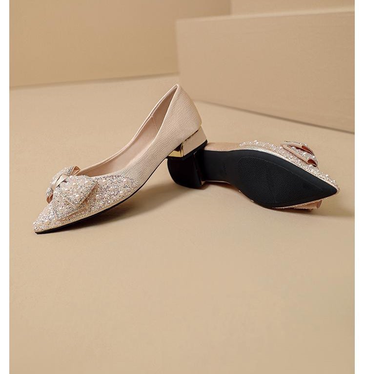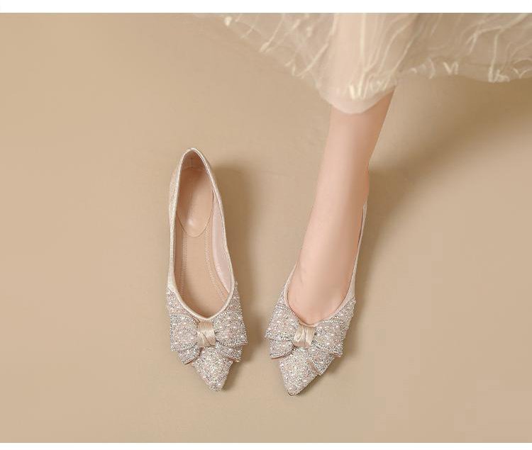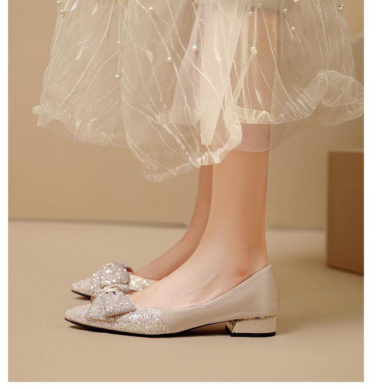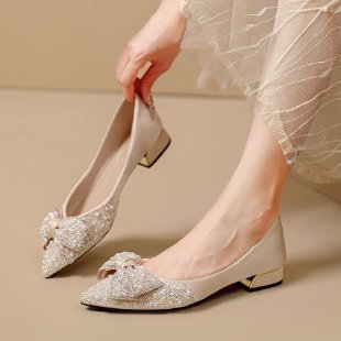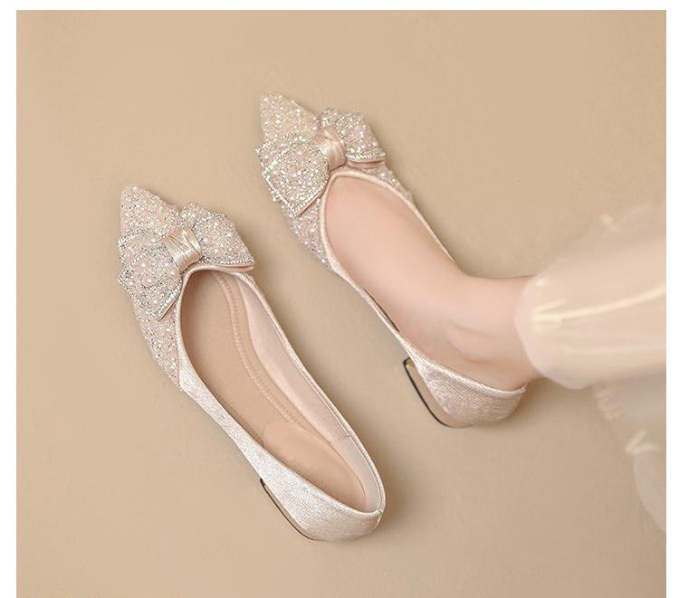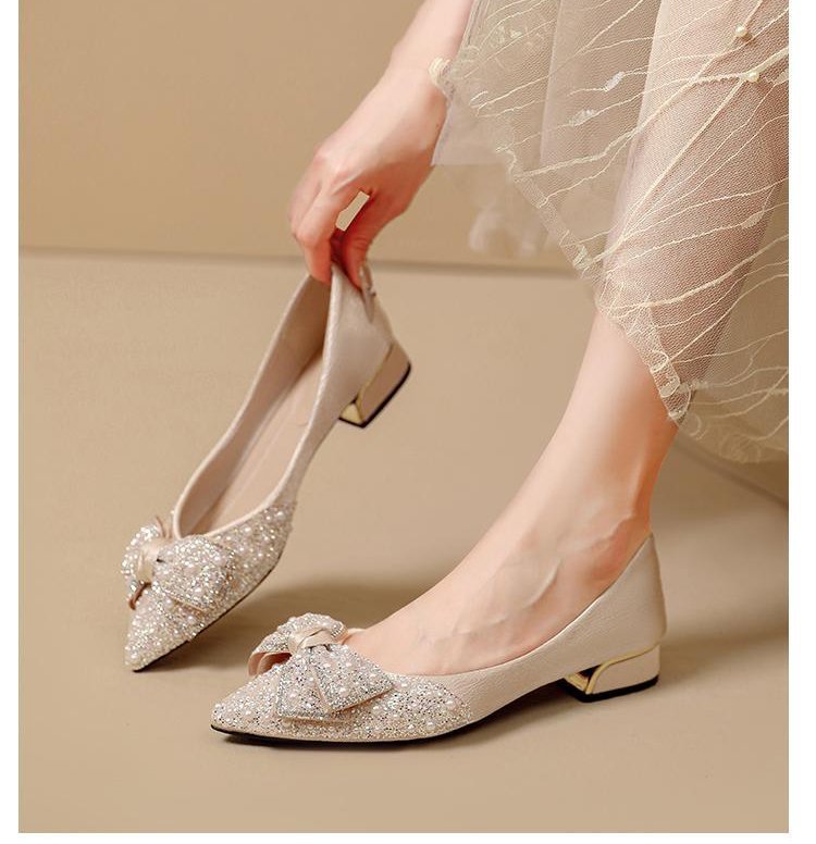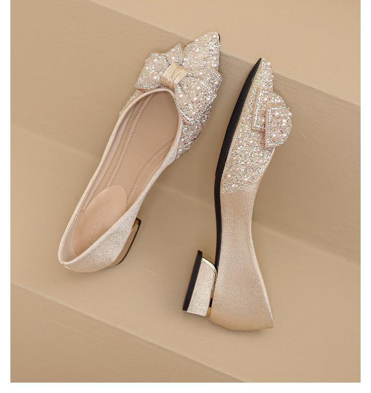 인기 있는 부드러운 밑창 2025 신발 새로운 스타일 진주 라인스톤 뾰족한 나비 매듭 프렌치 펌프스 진주 젠틀스토어 가기