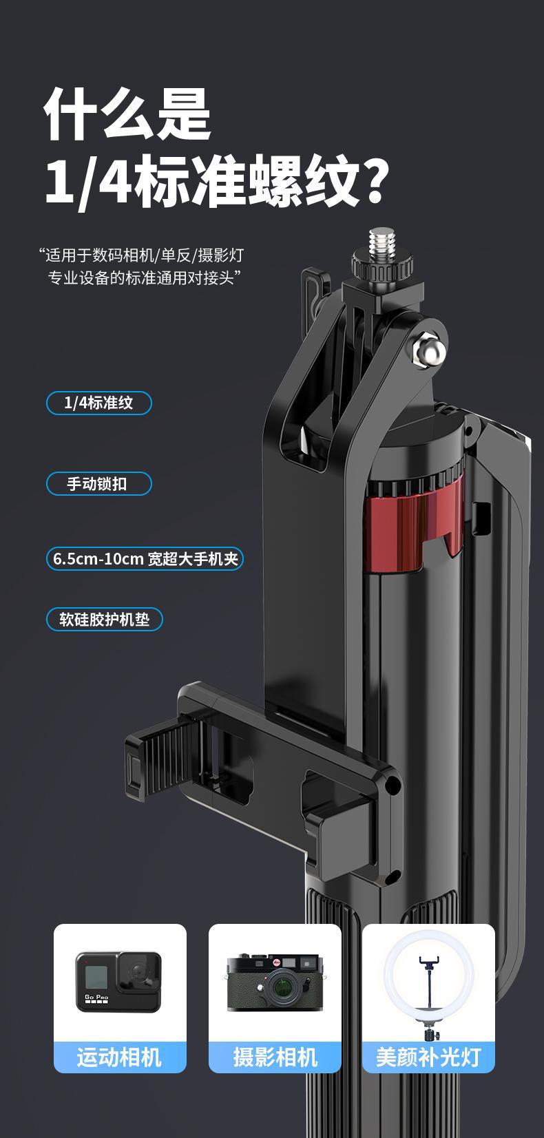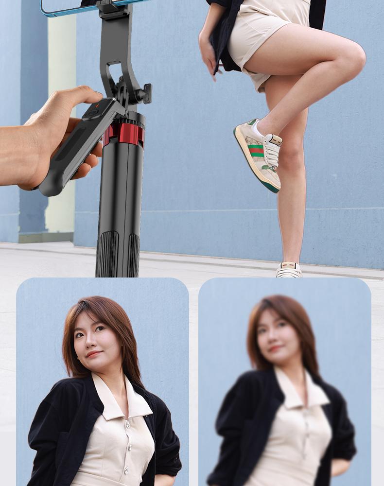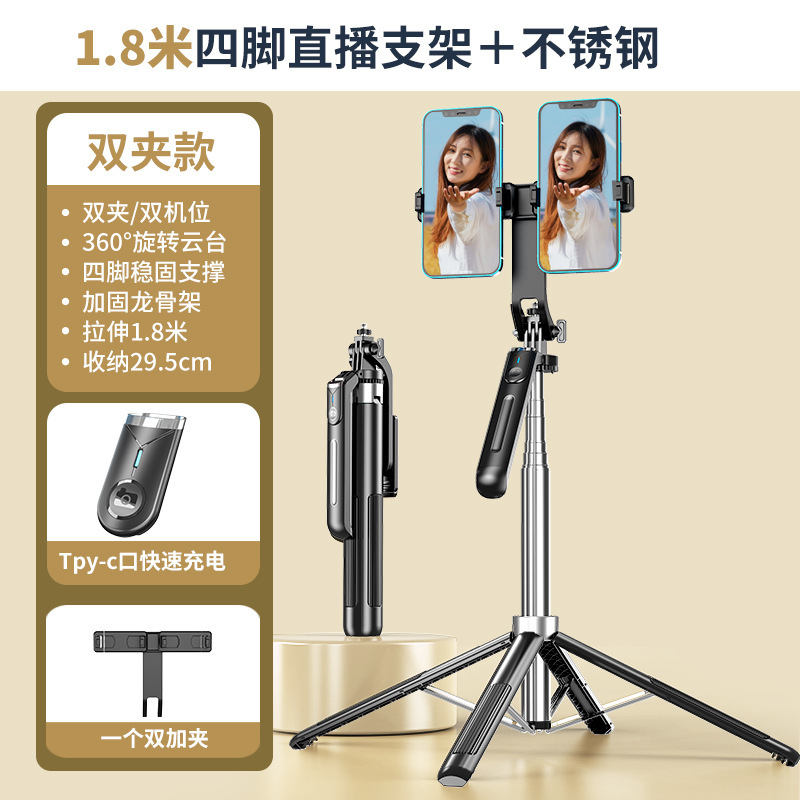• 1.8m P190 스테인리스 스틸 셀카봉, 조명이 없는 듀얼 카메라 위치
