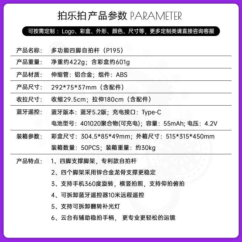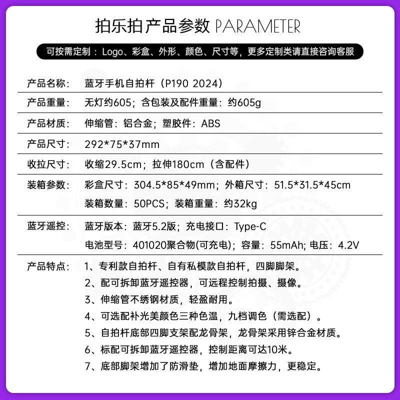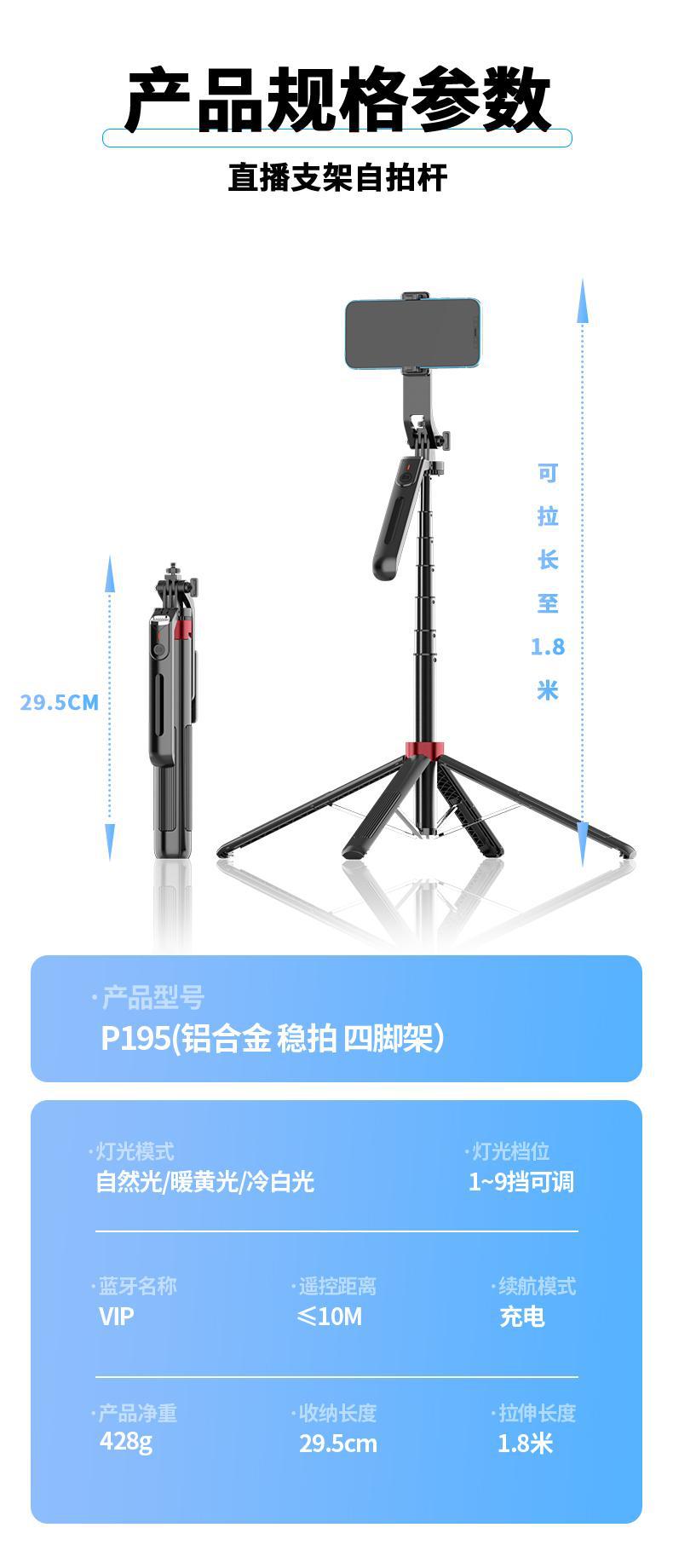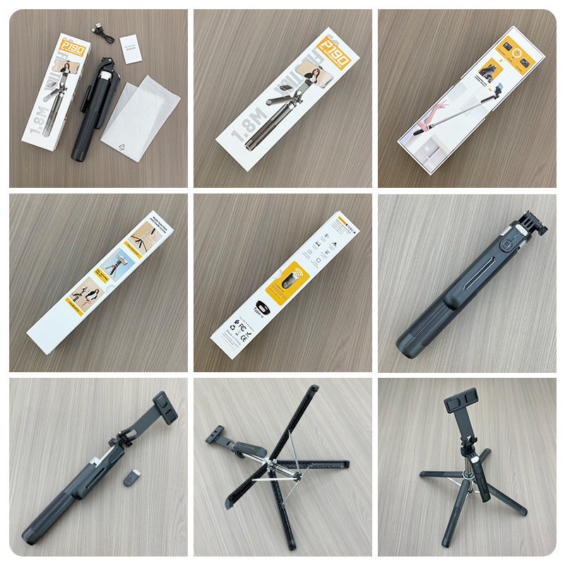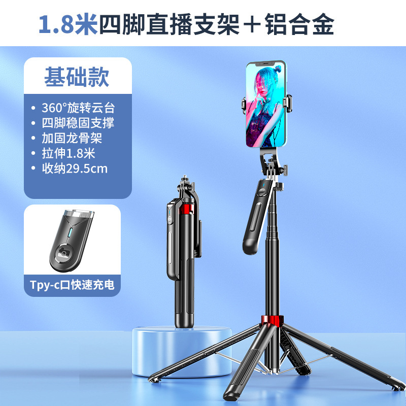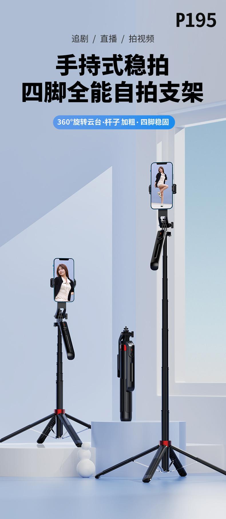P195 P190 셀카봉 플로어 라이브 방송 4피트 스탠드 일체형 1.8m 개폐식 360 ° 회전