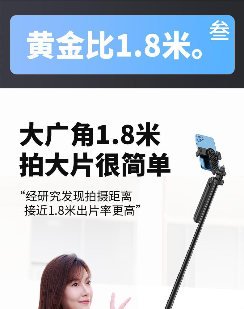 • 1.8m P195 알루미늄 합금 셀카봉, 이중 카메라 위치, 조명 없음