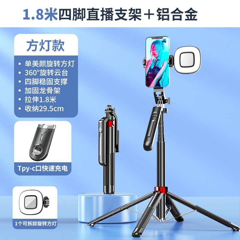 • 1.8m P195 알루미늄 합금 셀카봉 + 작은 사각형 조명 1개