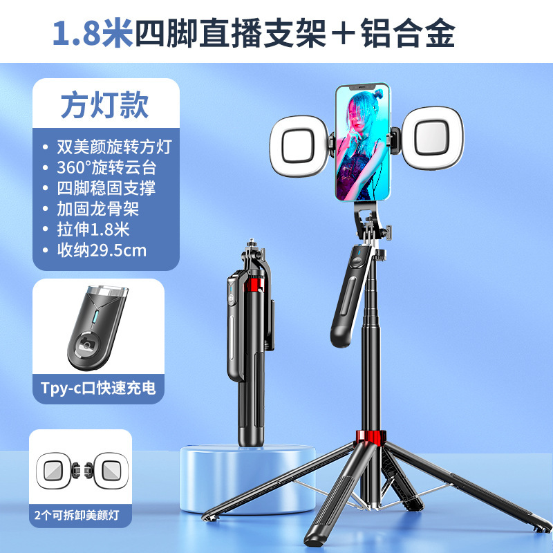 • 1.8m P195 알루미늄 합금 셀카봉 + 작은 정사각형 조명 2개