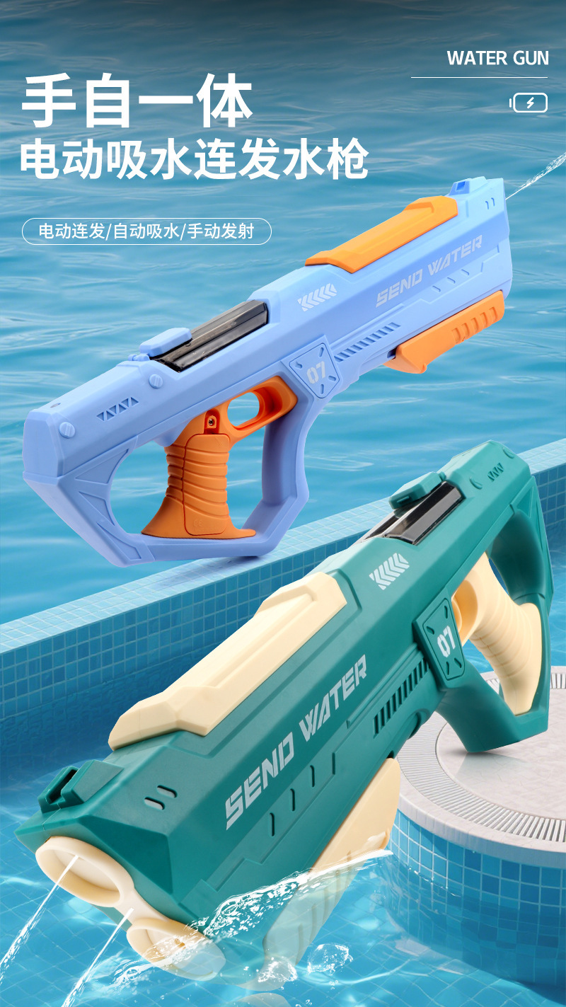 국경 간 어린이 전기 연속 물총 장난감 자동 물 흡입 및 수동 고압 물 스프레이 전기 물총 도매
