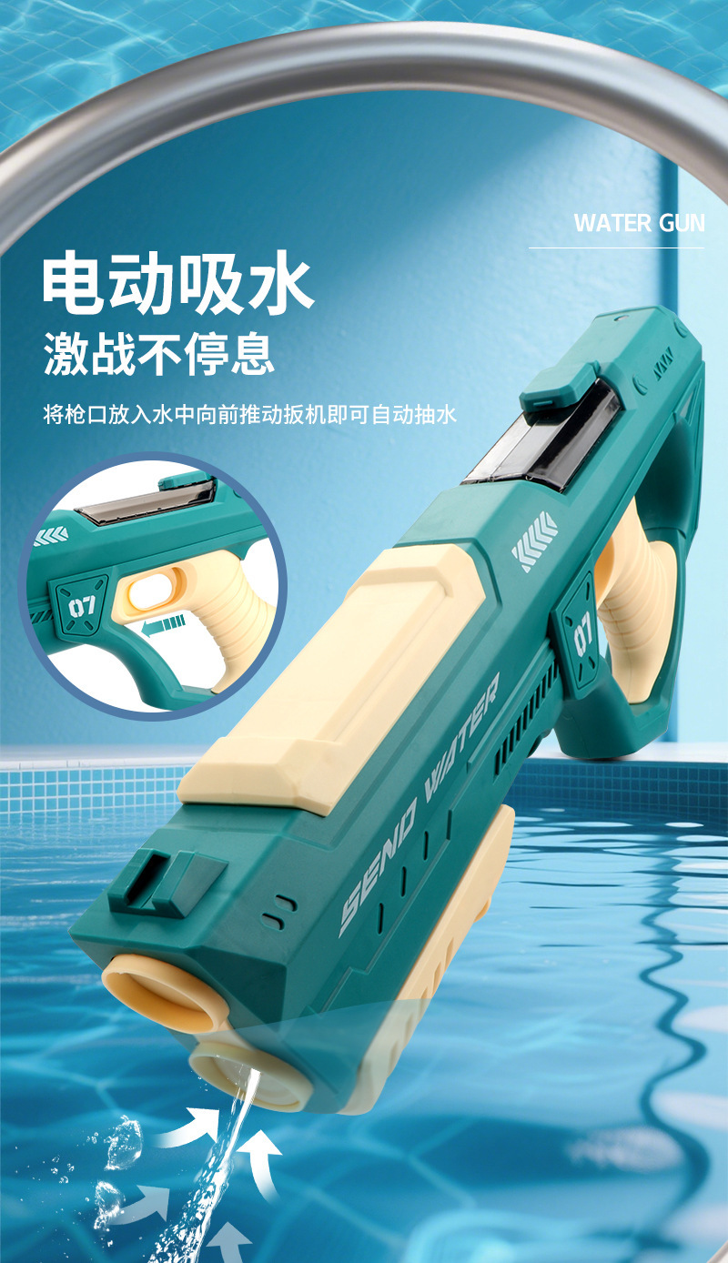 국경 간 어린이 전기 연속 물총 장난감 자동 물 흡입 및 수동 고압 물 스프레이 전기 물총 도매스토어 가기