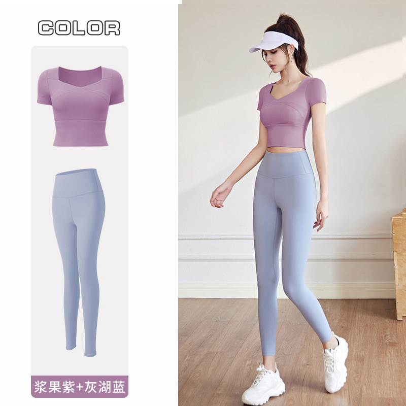 브라가 필요 없는 스플라이스 요가복 신축성 있는 스포츠 숏 슬림핏 러닝 피트니스 세트 여성용스토어 가기