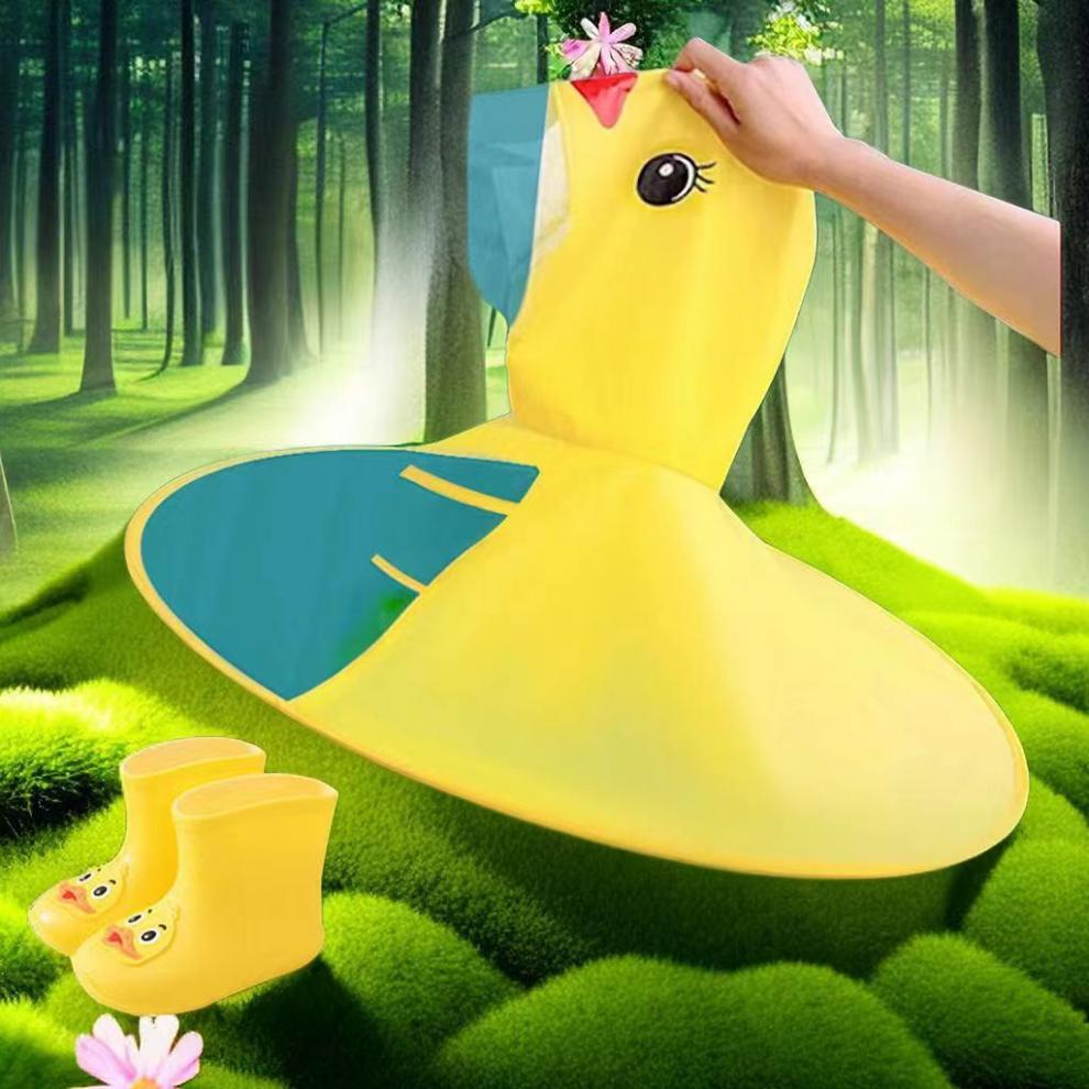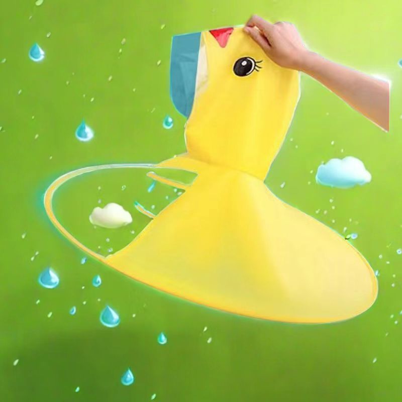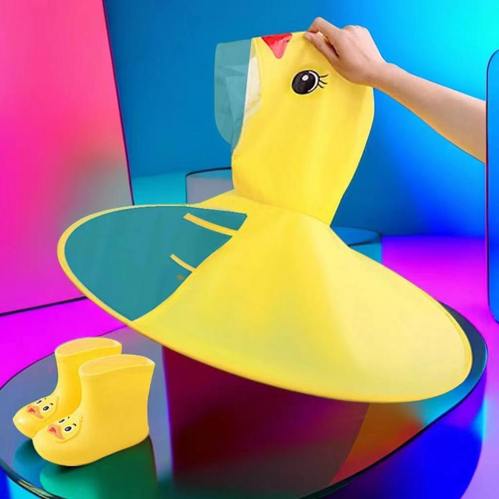 Douyin 인터넷 연예인 같은 스타일의 부모-자식 UFO 비옷 유치원 어린이 작은 노란색 오리 망토 우산 만화 비 모자