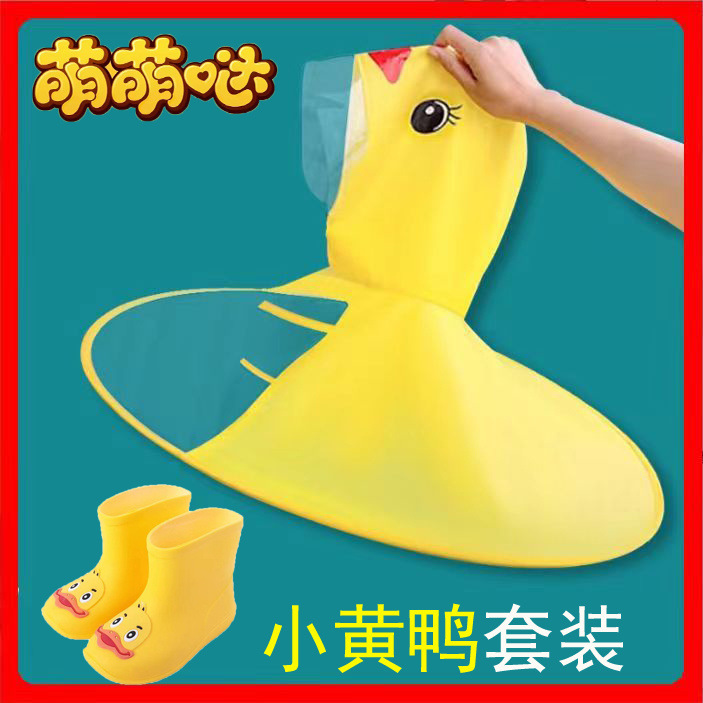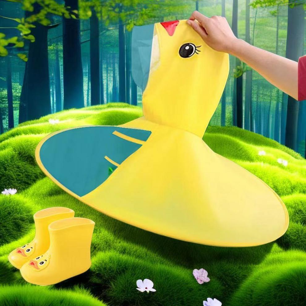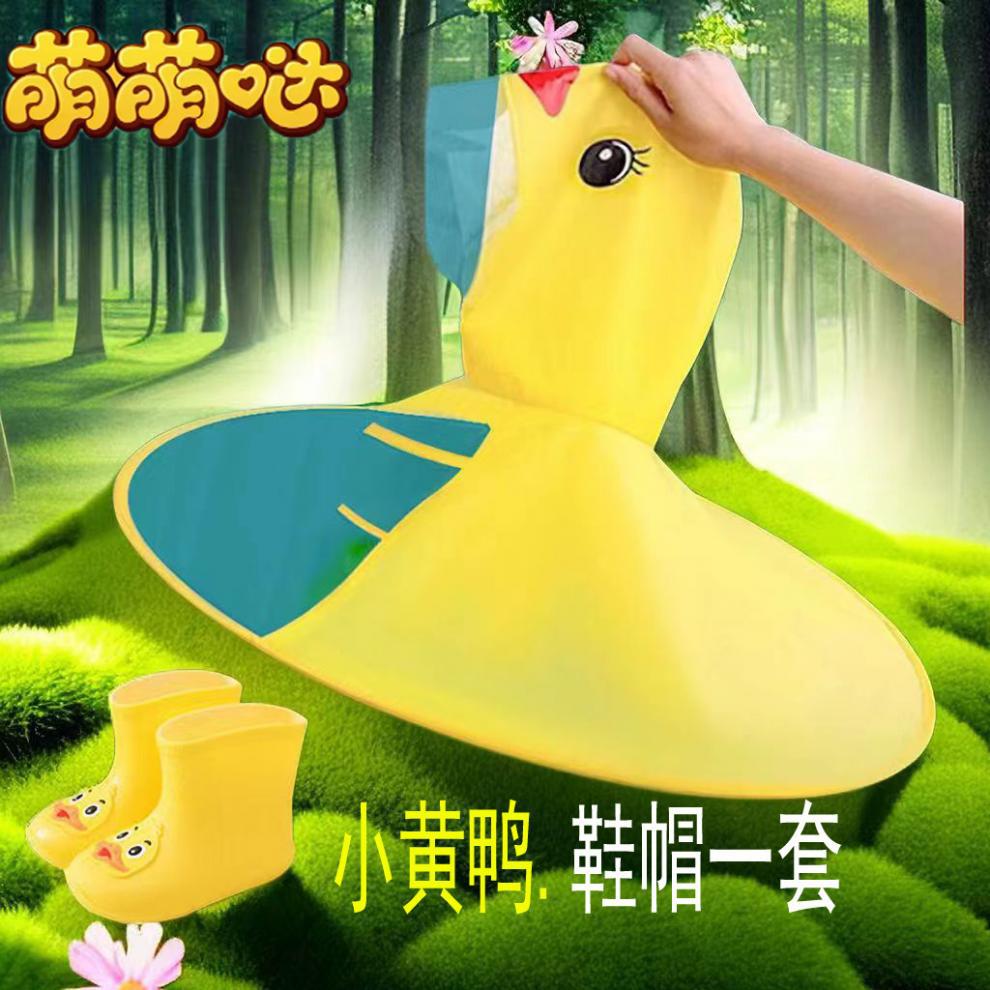 Douyin 인터넷 연예인 같은 스타일의 부모-자식 UFO 비옷 유치원 어린이 작은 노란색 오리 망토 우산 만화 비 모자스토어 가기