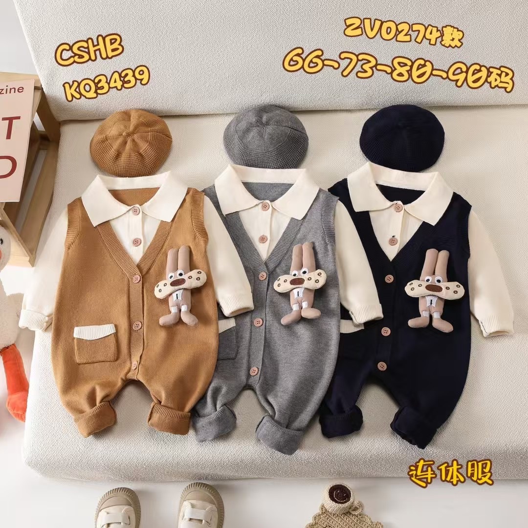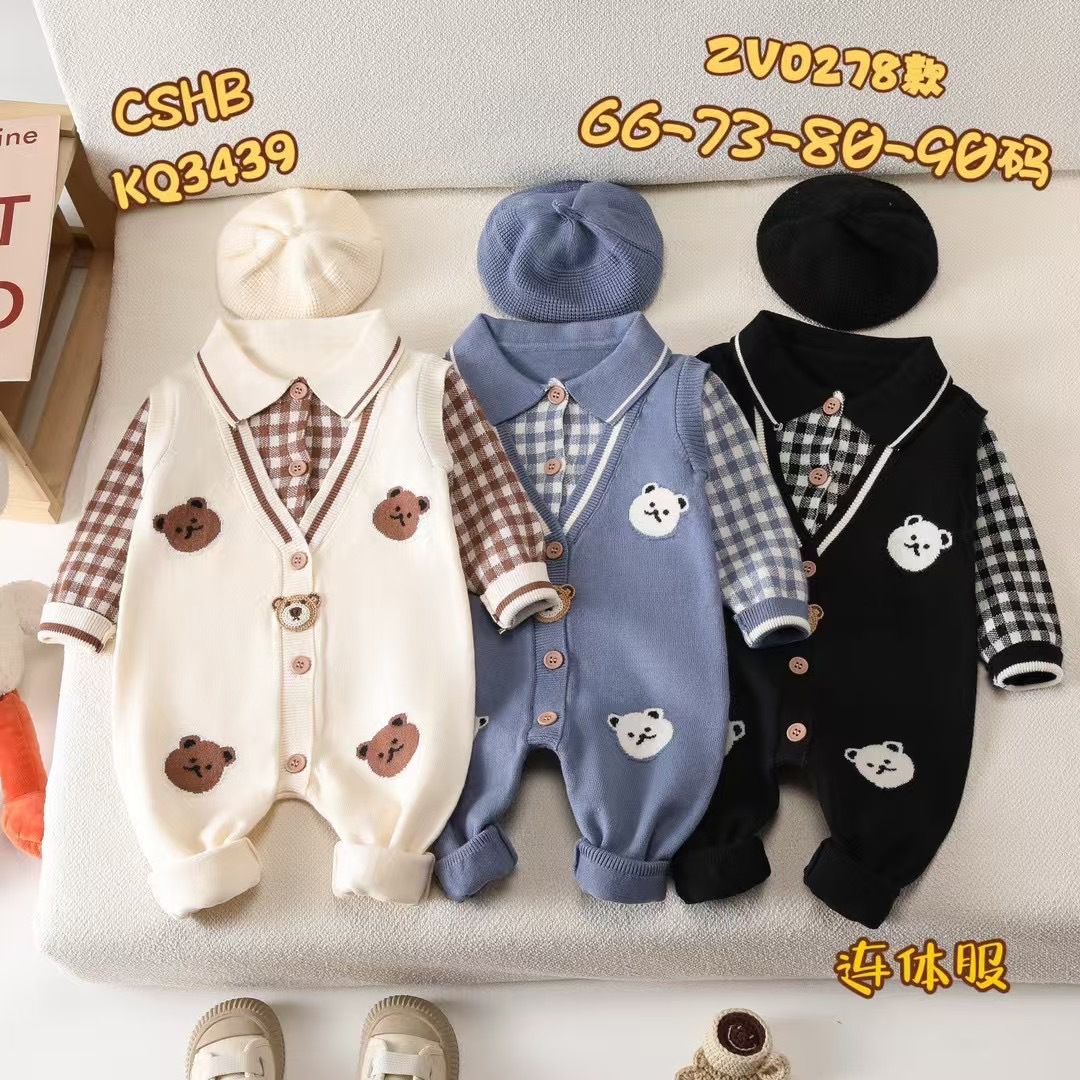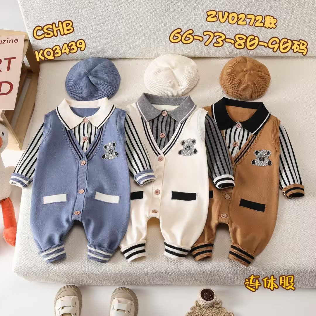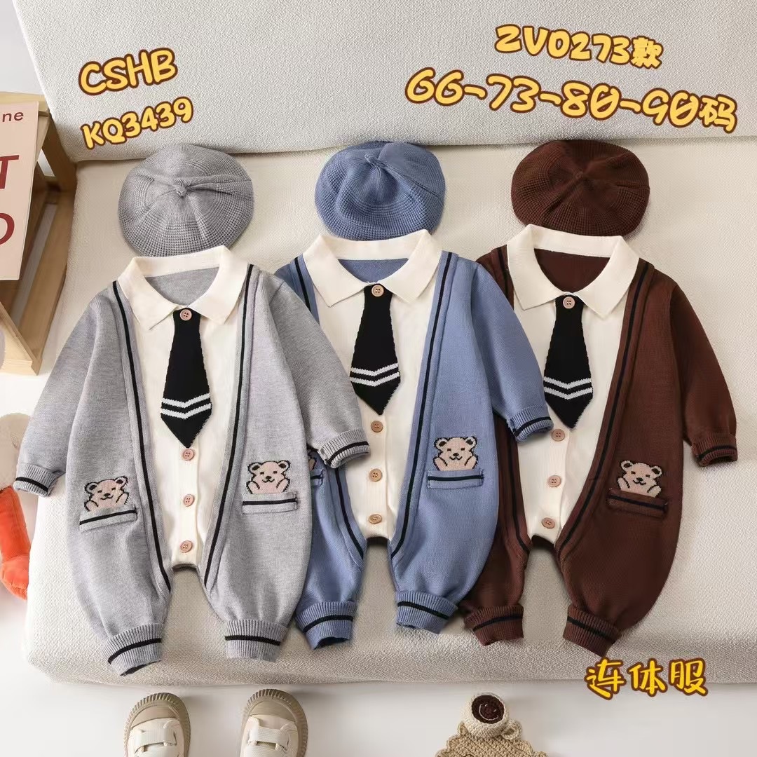 2025 새로운 아기 스웨터 rompers 봄과 가을 신생아 한국 스타일 귀여운 곰 점프 슈트 니트 바지