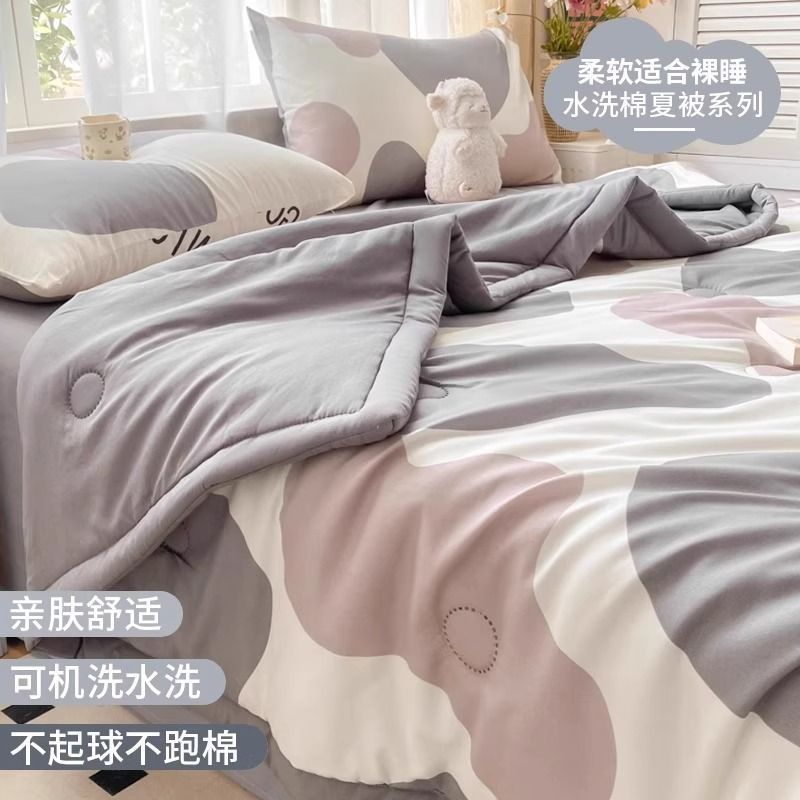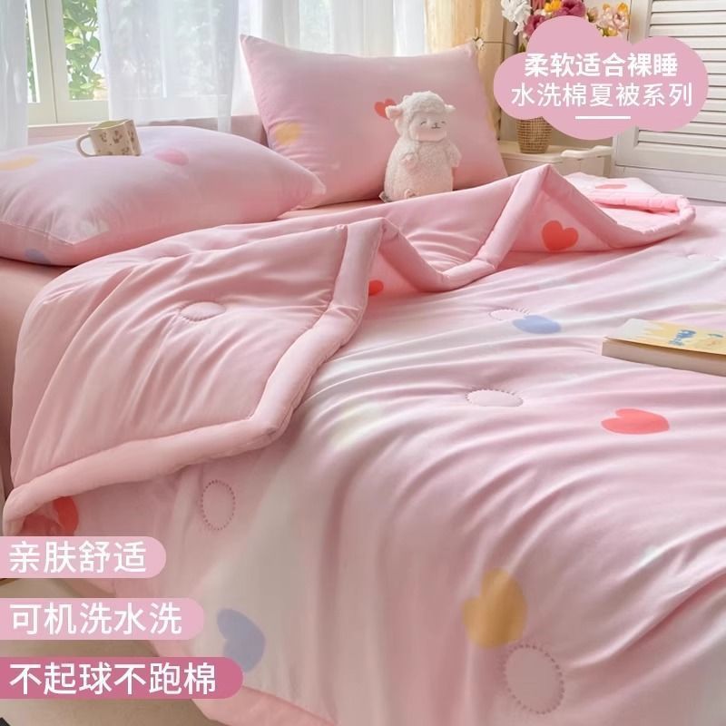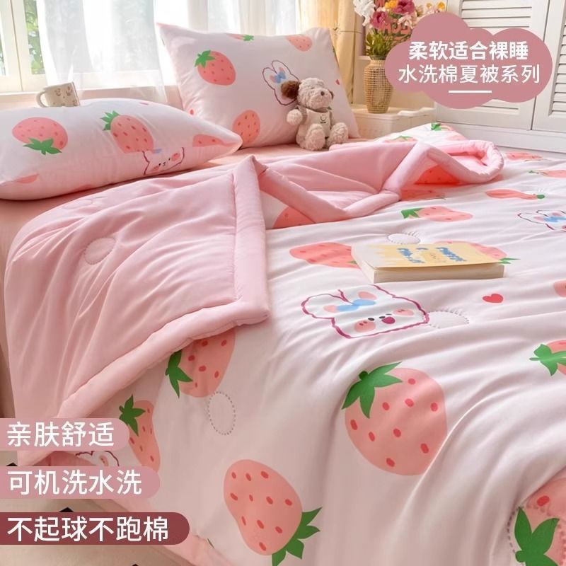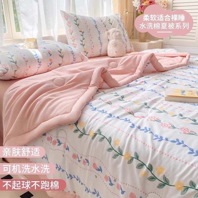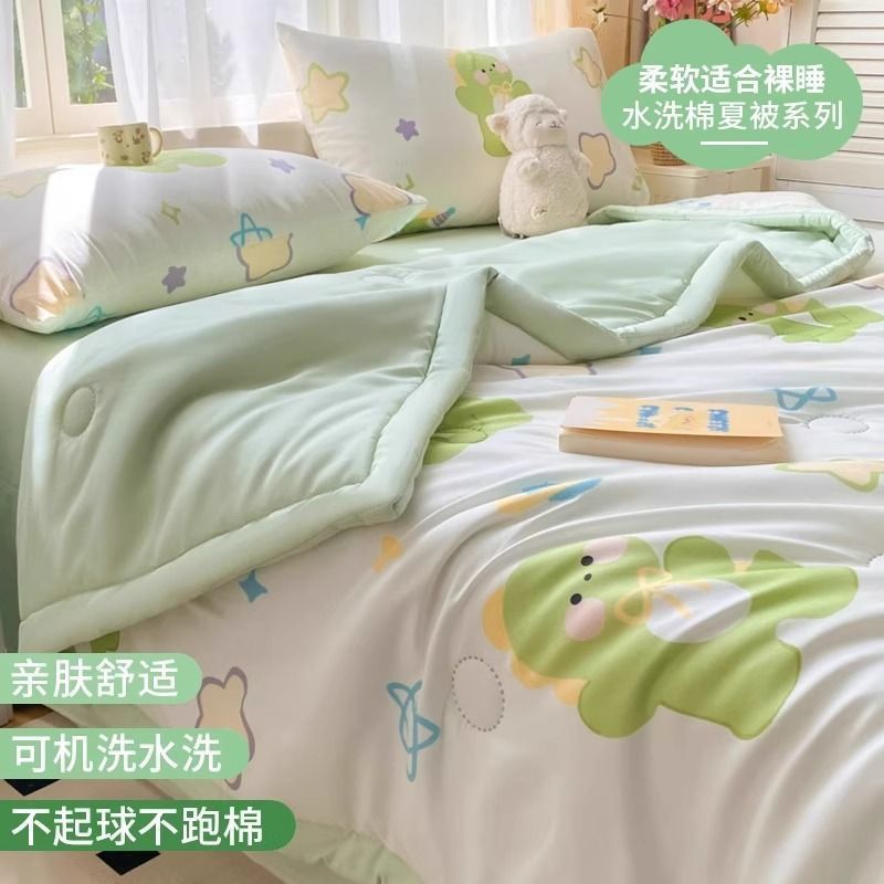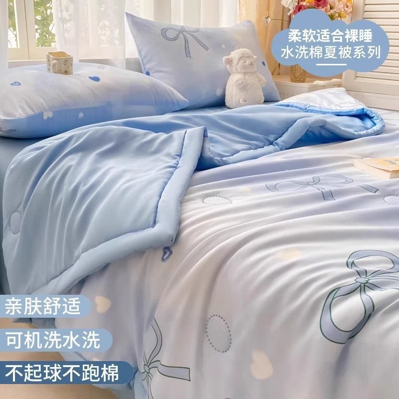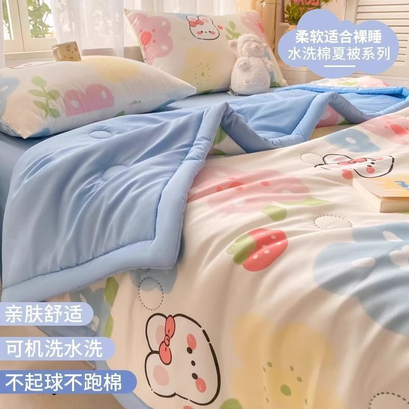 에어컨 이불 여름 시원한 2025 새로운 어린이 이불 기계 세탁 가능한 여름 기숙사 싱글 여름 비 순면