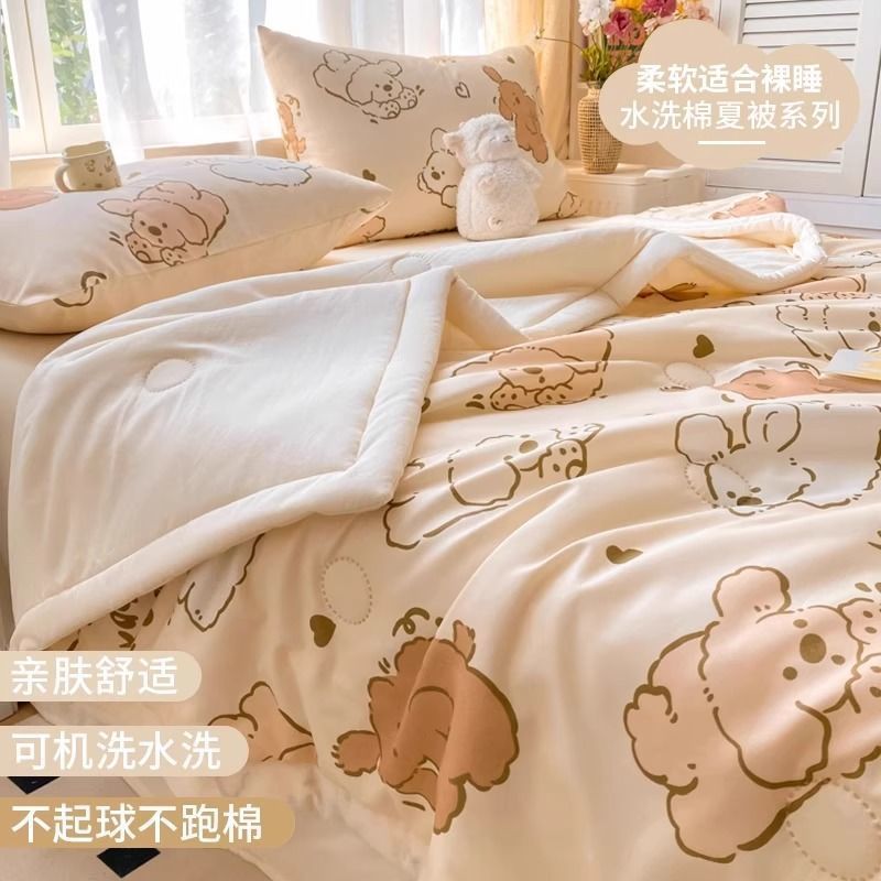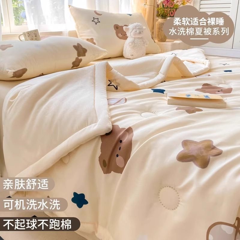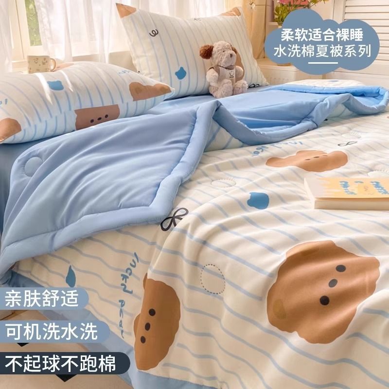 에어컨 이불 여름 시원한 2025 새로운 어린이 이불 기계 세탁 가능한 여름 기숙사 싱글 여름 비 순면스토어 가기
