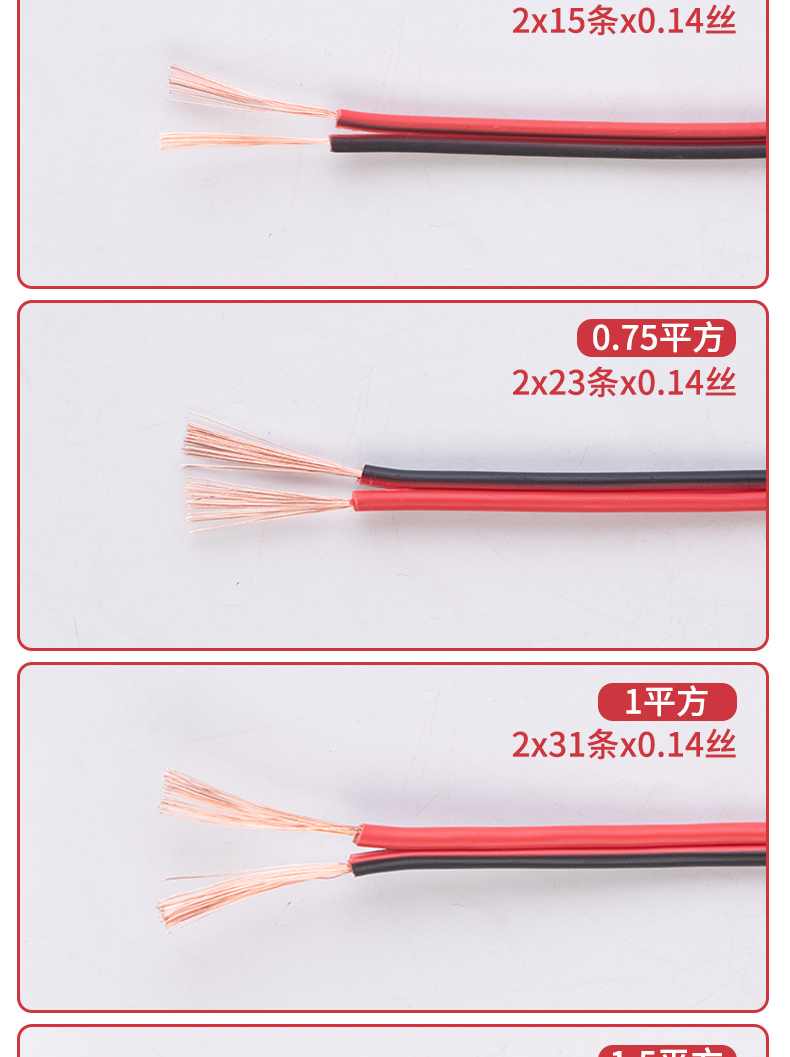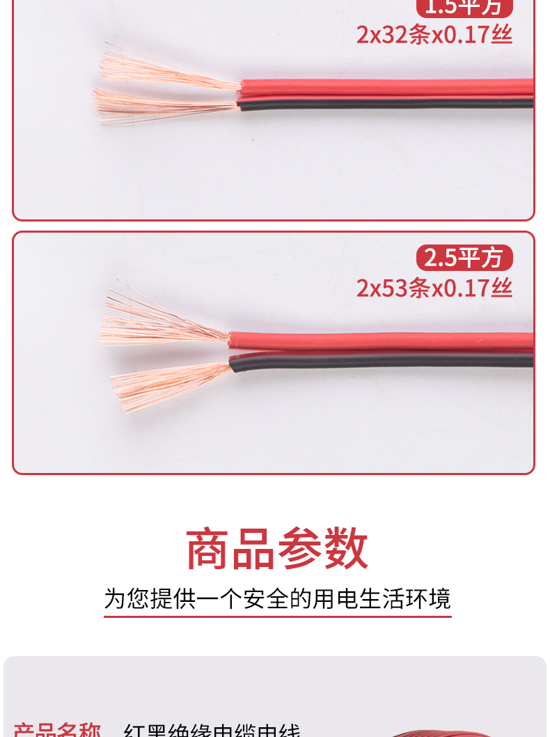 • RVB 빨간색과 검정색 평행선 10m -2 코어 -1.5 평방 밀리미터
