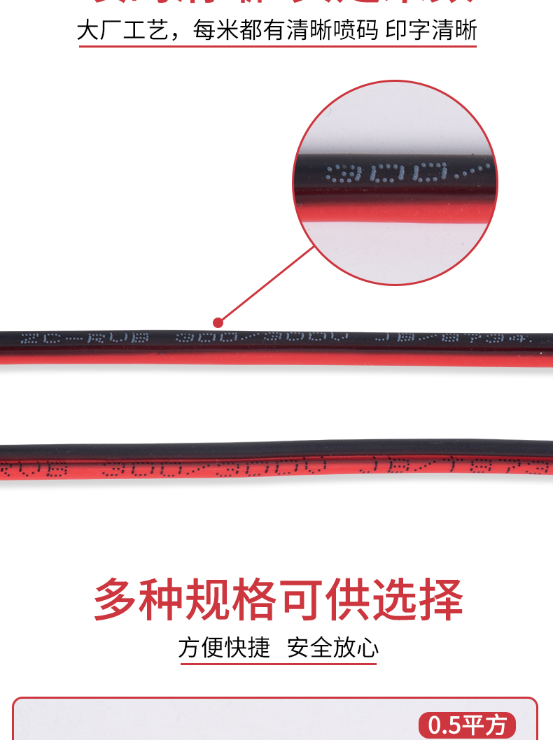 • RVB 빨간색과 검정색 평행선 10m -2 코어-0.5 평방 밀리미터