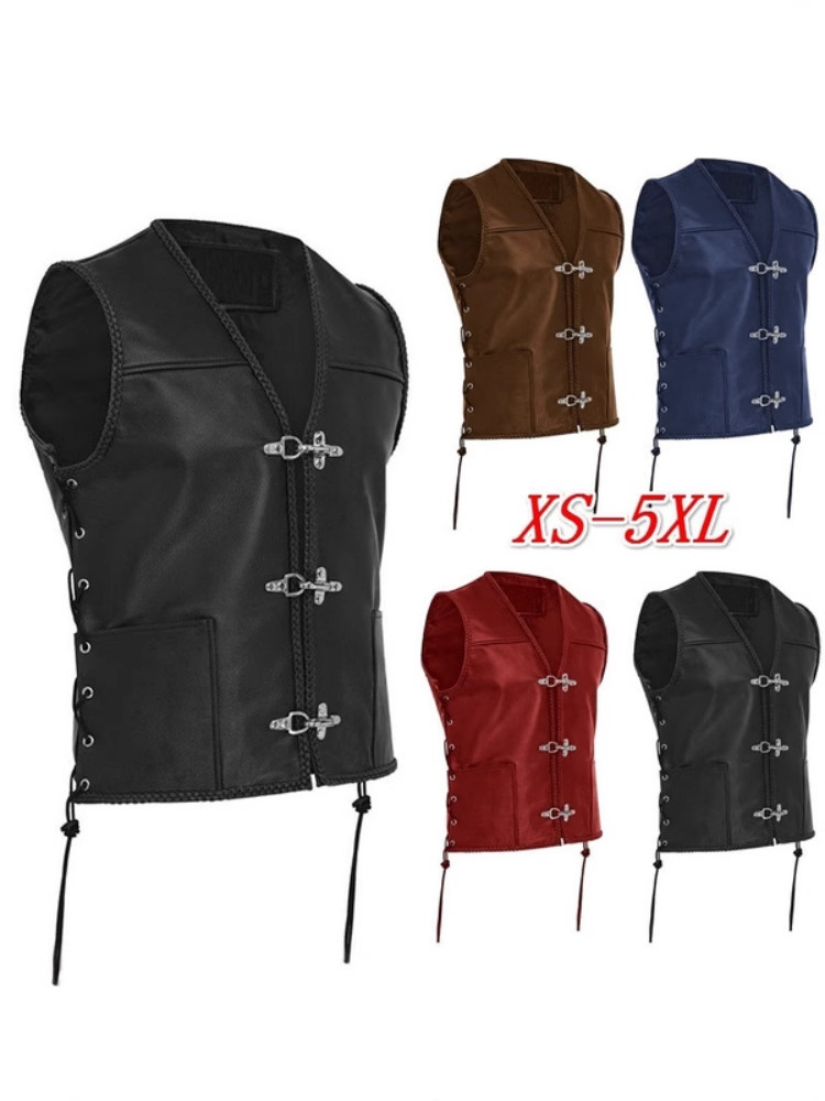 국경 간 공급 Amazon 남성용 가죽 조끼 V 넥 싱글 브레스트 사이드 스트랩 짧은 민소매 탑스토어 가기
