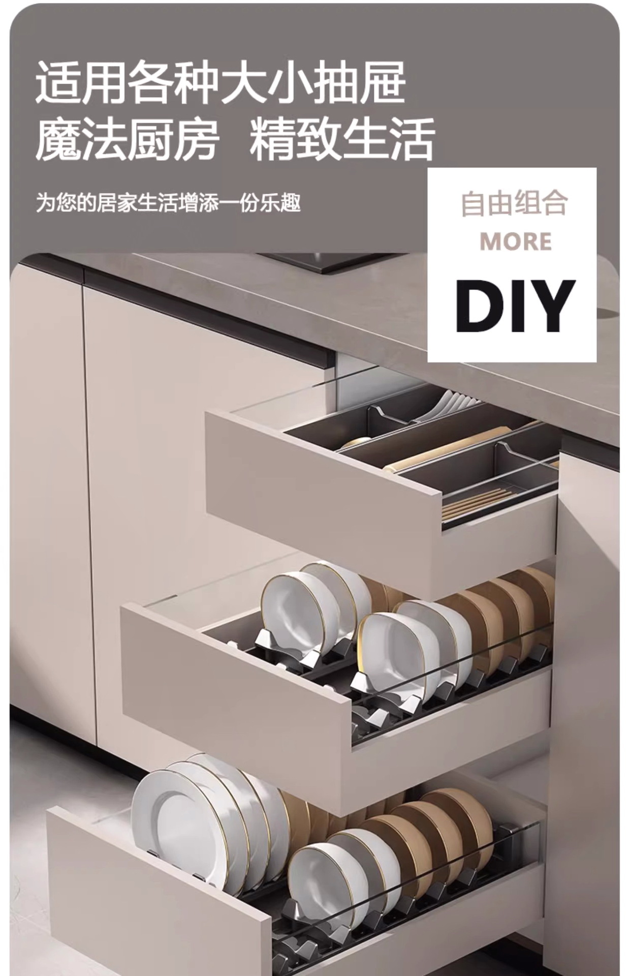 주방 접시 보관함 캐비닛 내장 수납 선반 다기능 칼, 포크, 스푼, 젓가락 및 식기 보관함스토어 가기