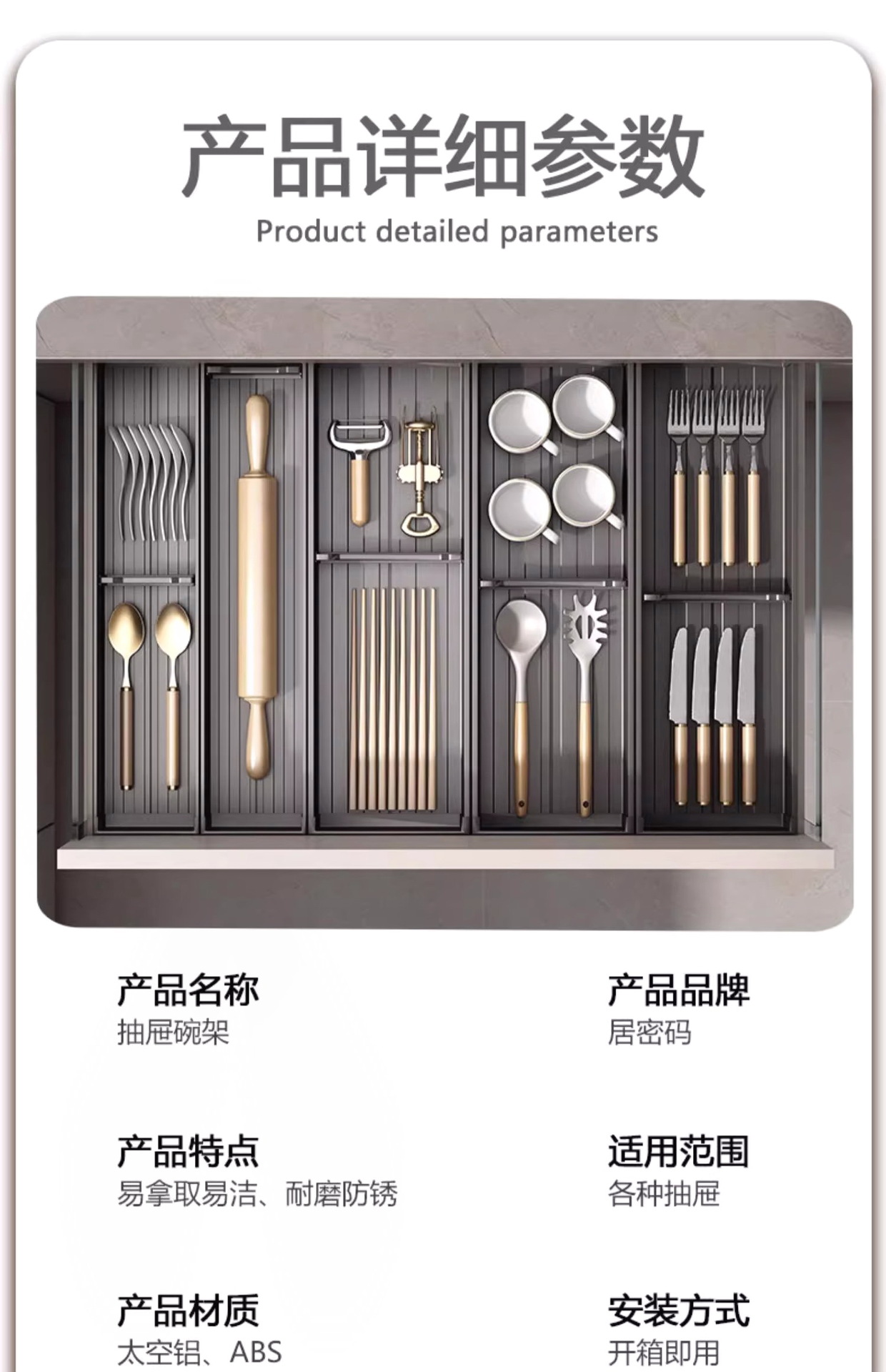 • [식기 분리 상자] 15*46CM [조절 가능한 배플/녹 방지 및 내마모성]