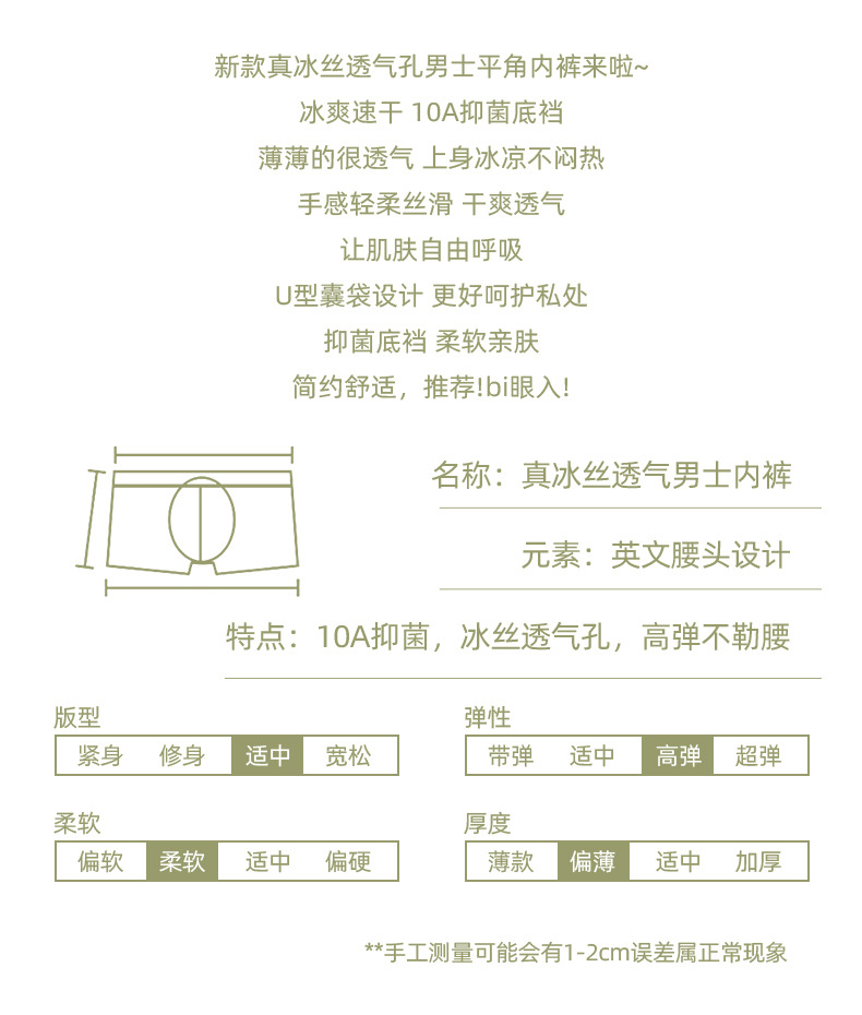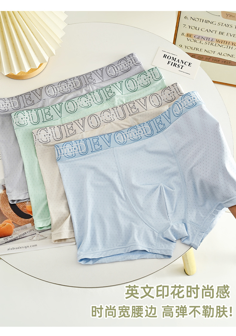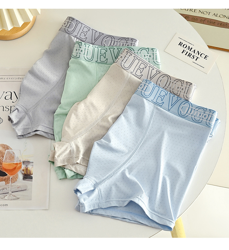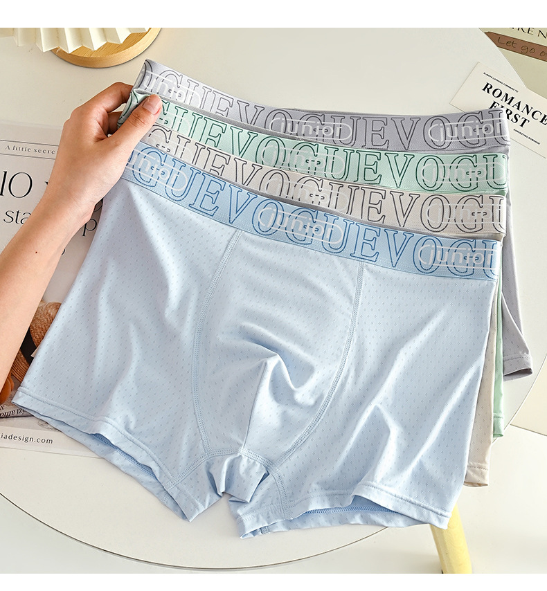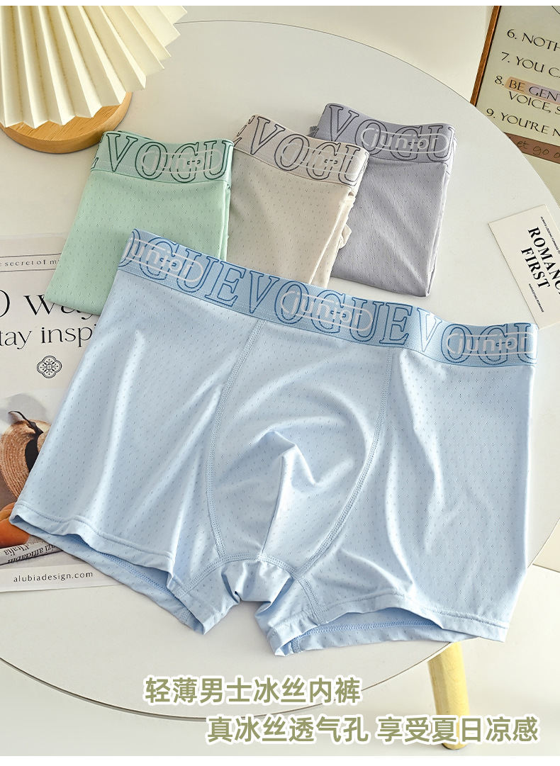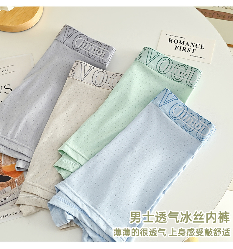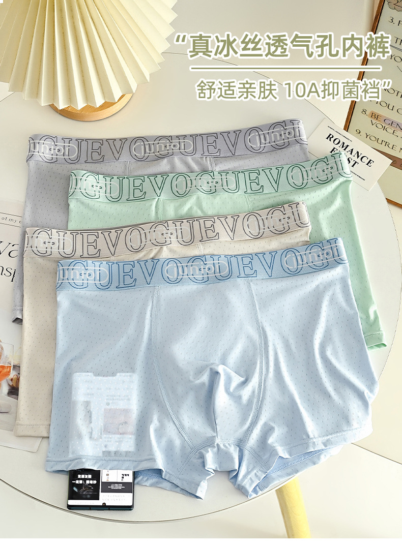 아이스 실크 통기성 남성 속옷, 통기성 사각 팬티, 항균 메쉬, 여름철 편안한 사각 팬티, 통기성 바닥