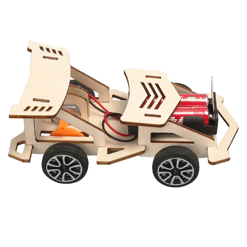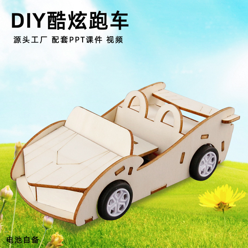 창의적인 전기 나무 경주용 자동차 기술 소규모 생산 초등학생이 발명한 조립 과학 실험 장난감 수제 재료