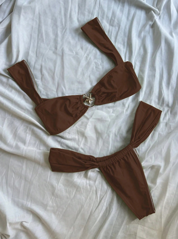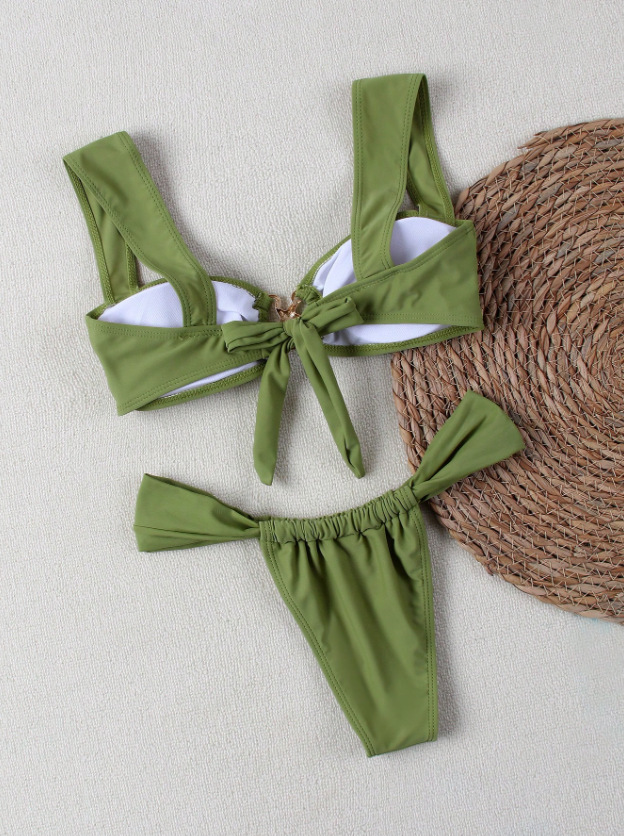 대외 무역 새로운 솔리드 컬러 스플릿 수영복 여성 유럽과 미국의 섹시한 순수한 욕망 핫 소녀 비키니 보우 아마존 수영복