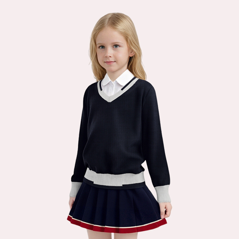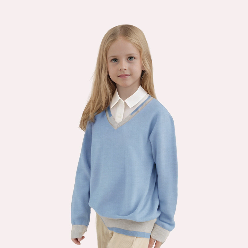 학생 니트 봄, 가을 무다림 긴팔 탑, 피부 친화적인 패셔너블 아우터웨어, 아동용 스윗하트 브이넥 스웨터
