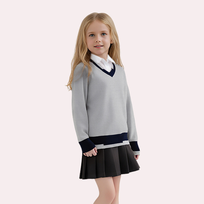 학생 니트 봄, 가을 무다림 긴팔 탑, 피부 친화적인 패셔너블 아우터웨어, 아동용 스윗하트 브이넥 스웨터스토어 가기