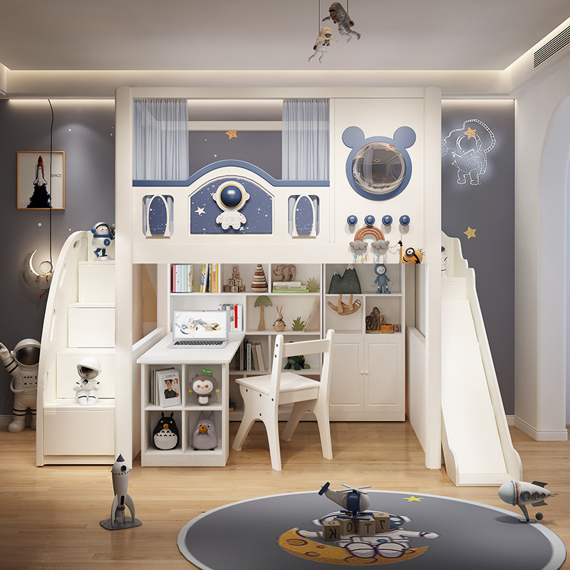 • 상부 침대 + 사다리 + 1.2m 책장 + 0.7m 옷장 + 미끄럼틀