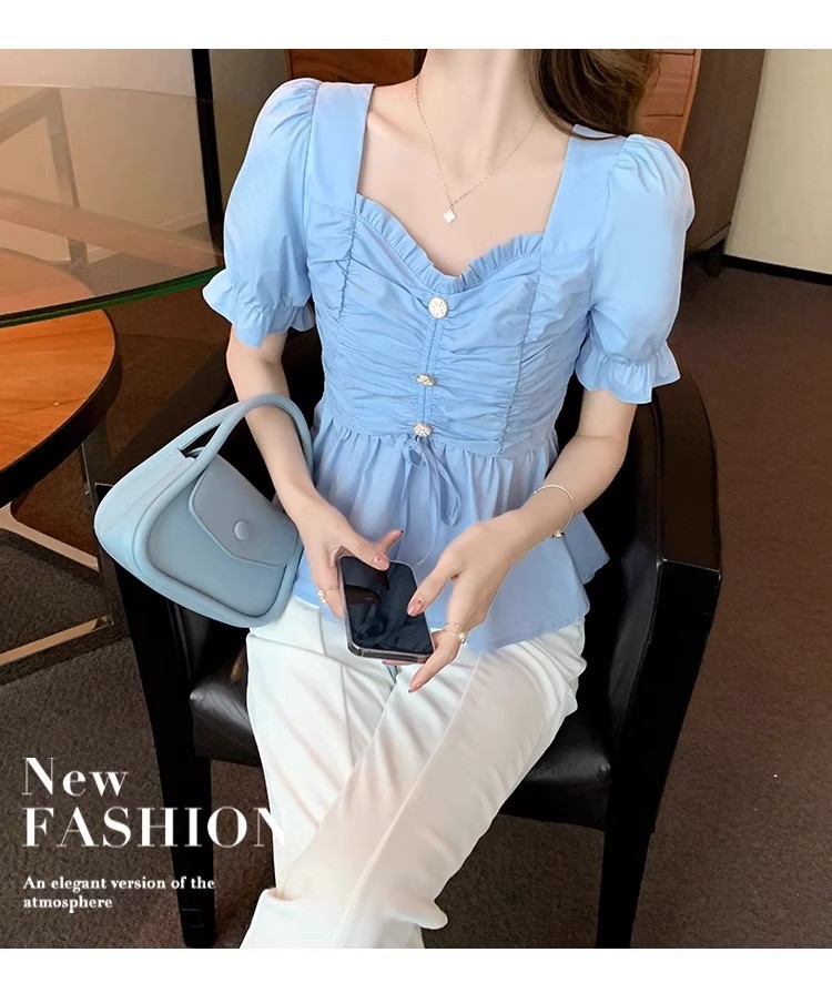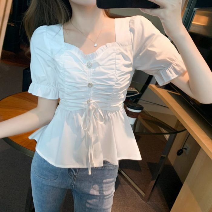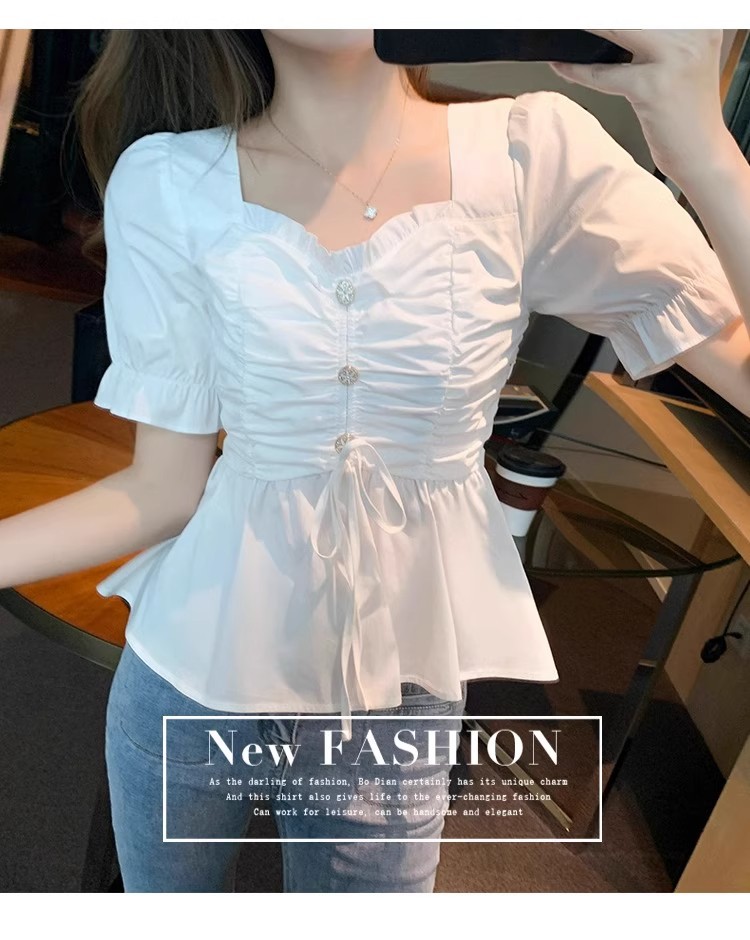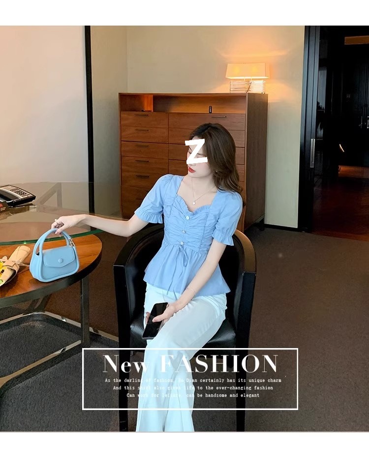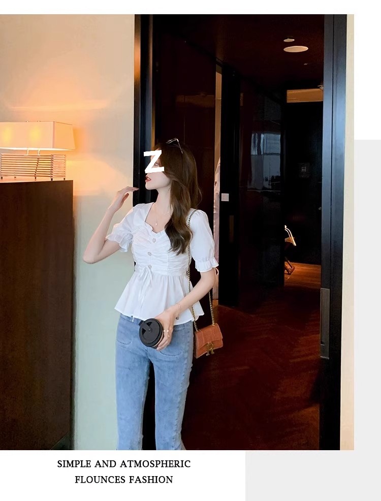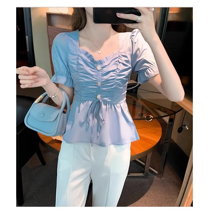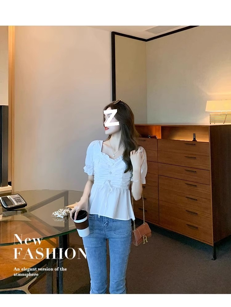 2025년 여름 신상품 배를 덮는 여성용 반팔 쉬폰 셔츠, 허리를 감싸주는 달콤한 기질 셔츠스토어 가기