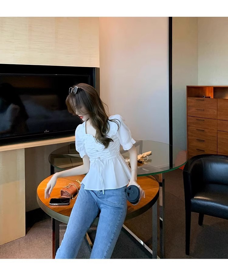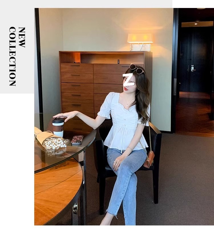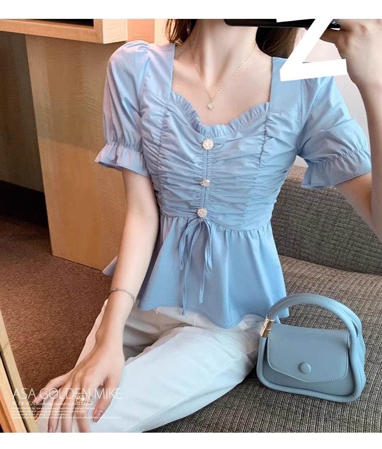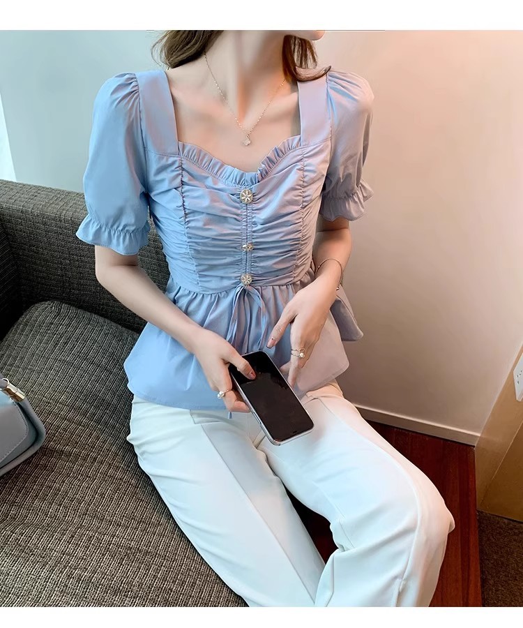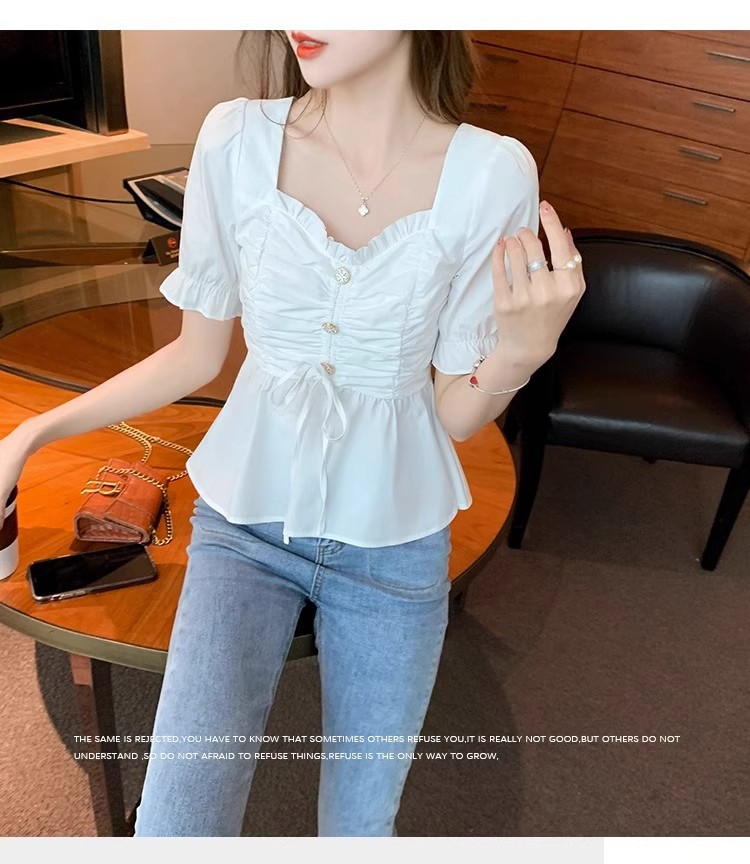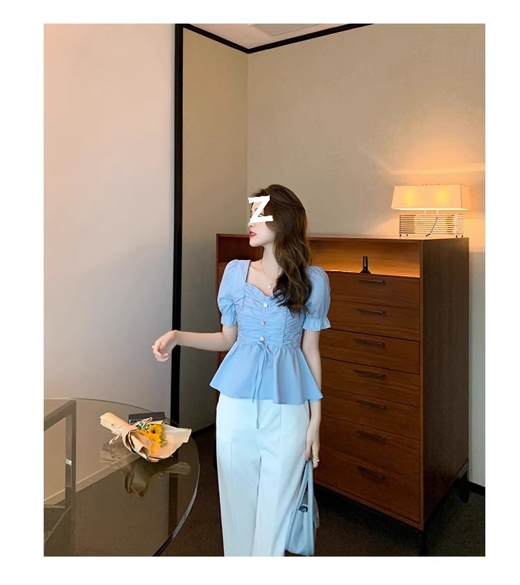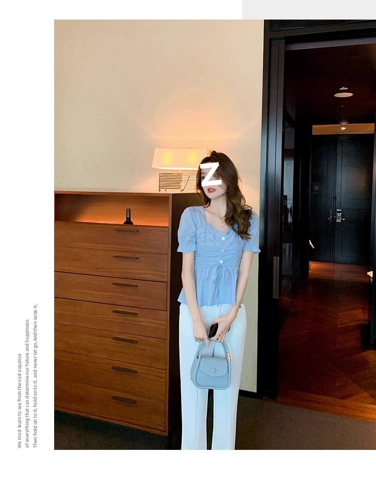 2025년 여름 신상품 배를 덮는 여성용 반팔 쉬폰 셔츠, 허리를 감싸주는 달콤한 기질 셔츠스토어 가기