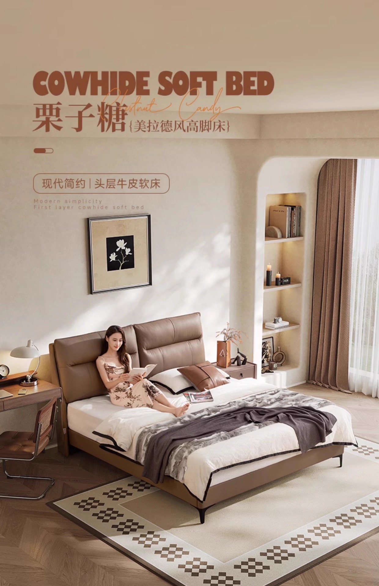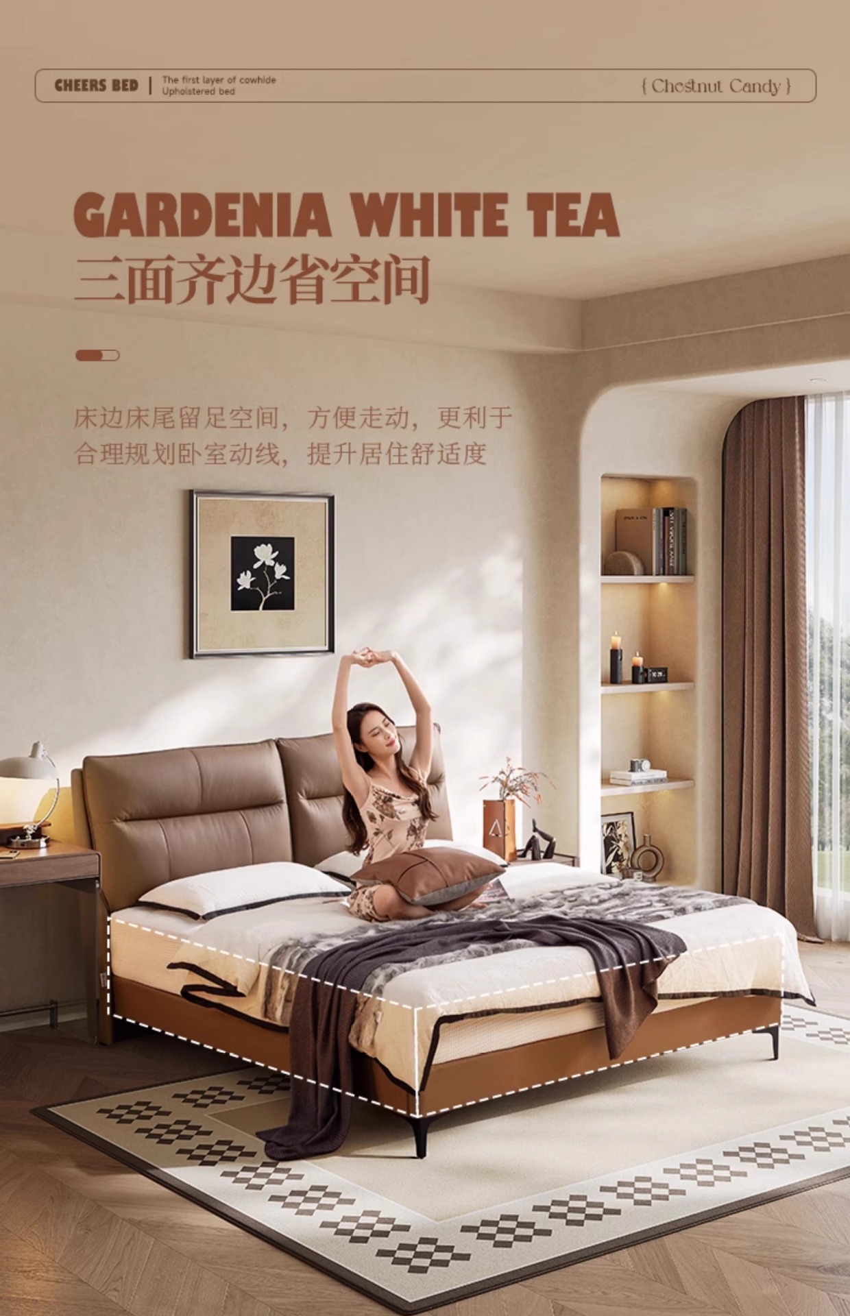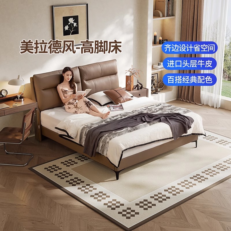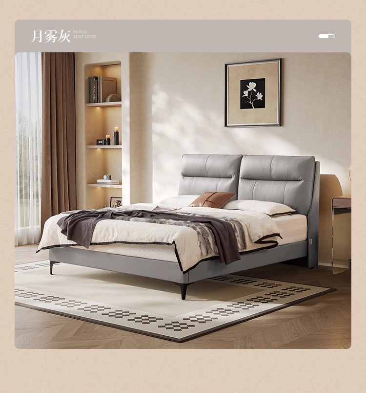 화이트 문라이트 가죽 침대, 모던하고 심플한 마스터 침실 대형 침대, 고급스럽고 우아한 소프트백 더블 침대, 2025년 신형 웨딩 침대스토어 가기