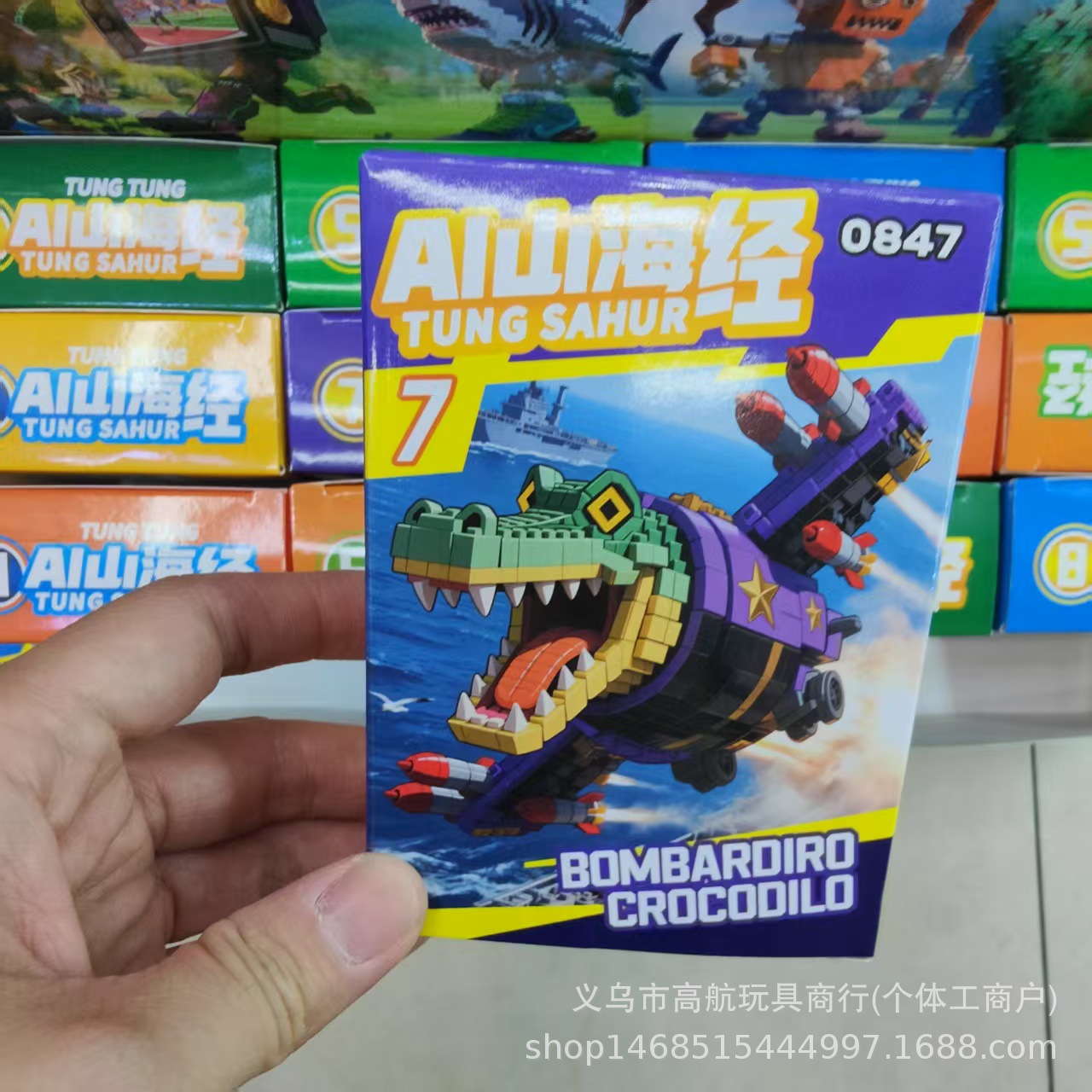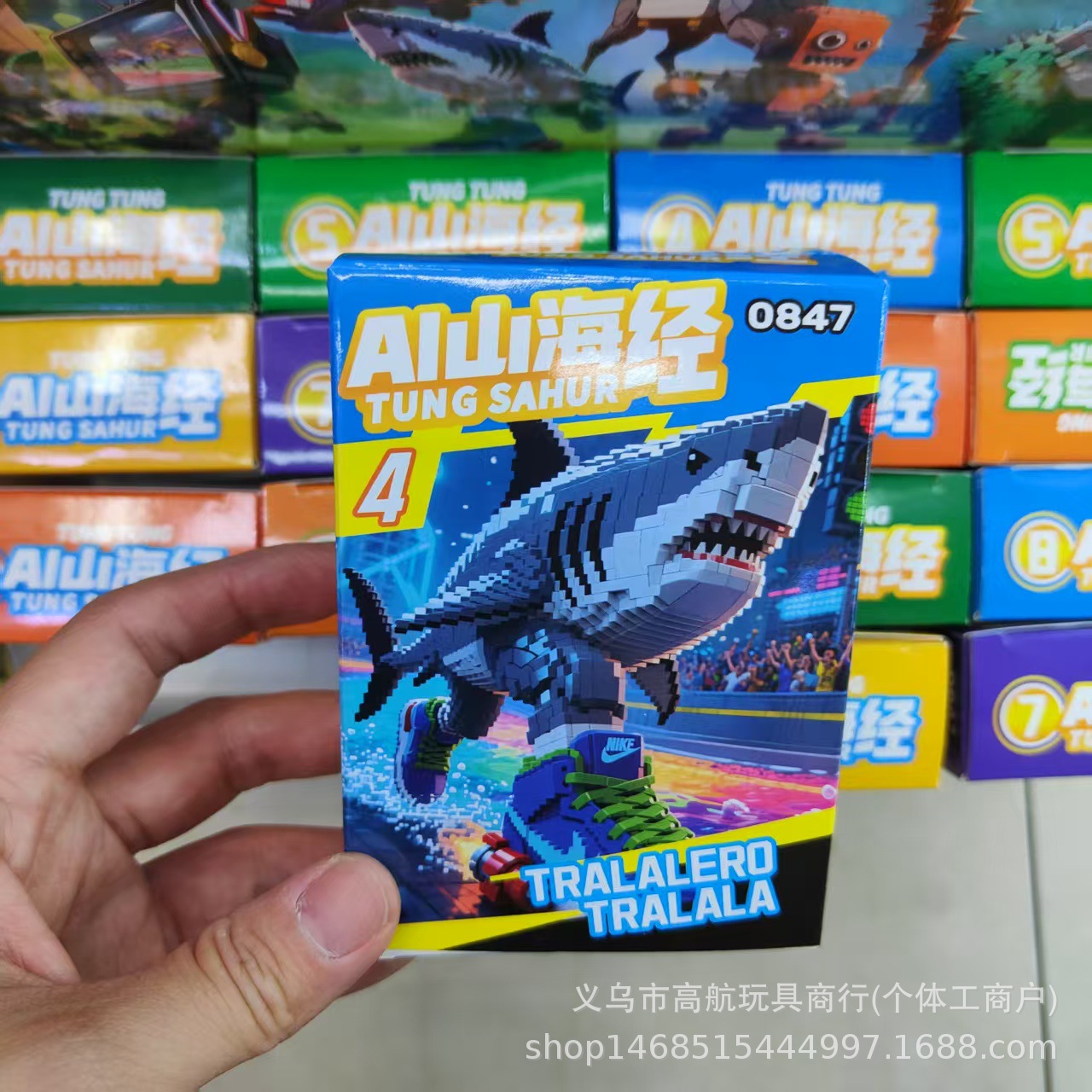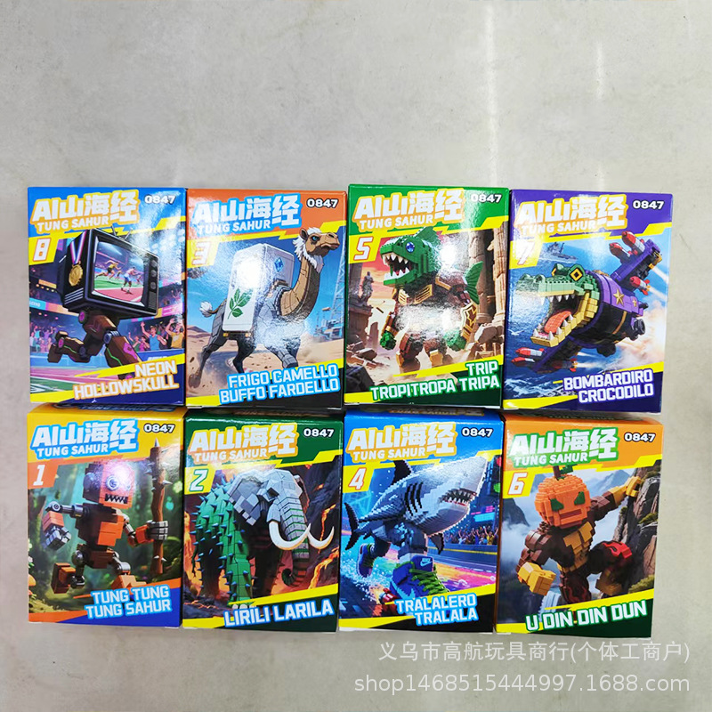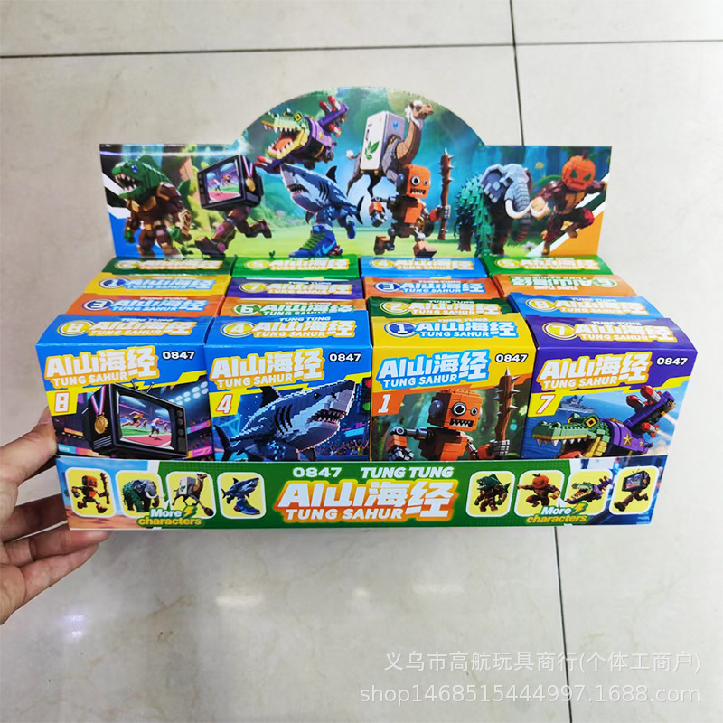 새로운 산해고전 시리즈 박스형 빌딩 블록 어린이 조립 통통 나무 막대기 만화 동물 상어 장난감스토어 가기