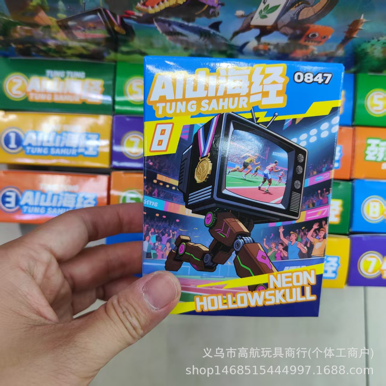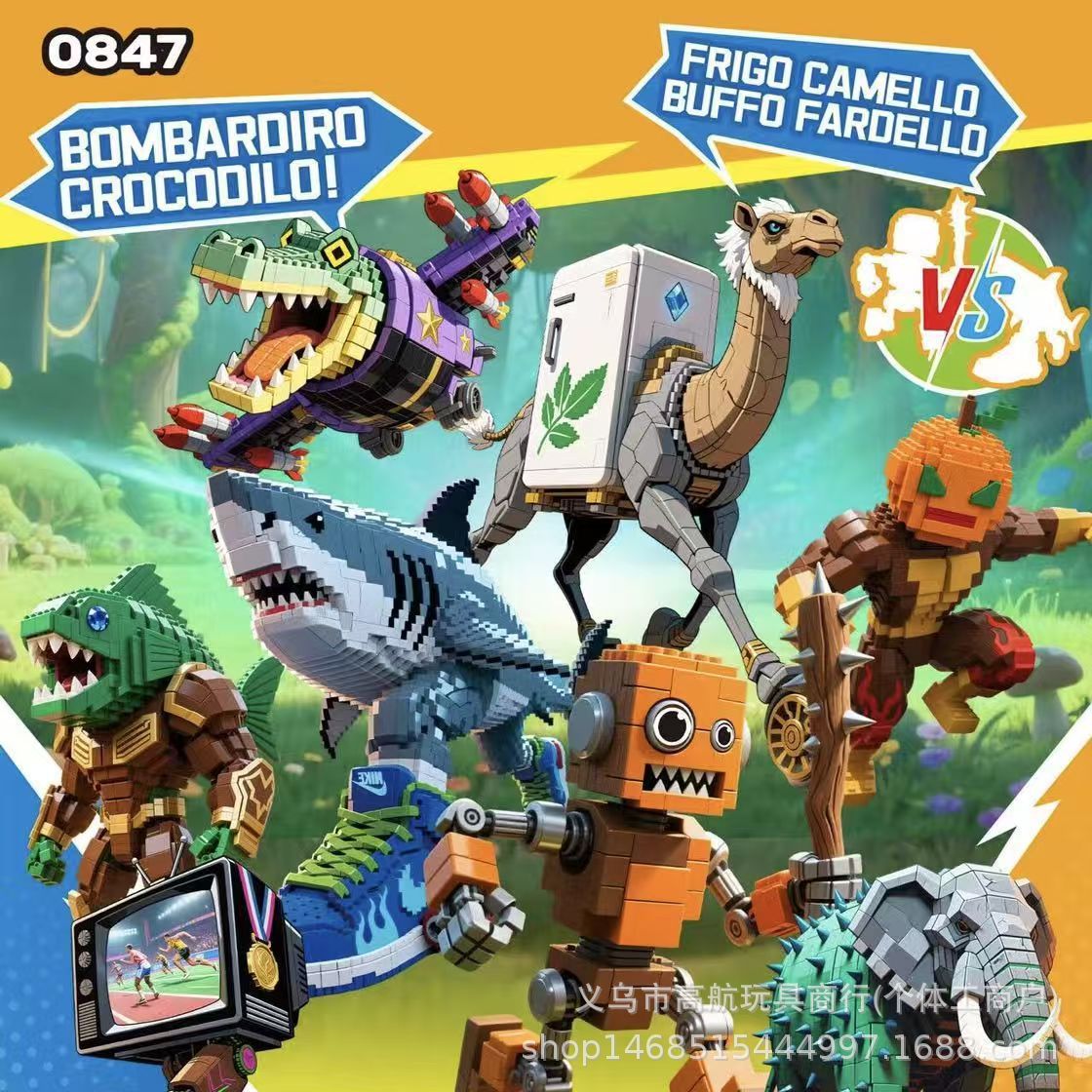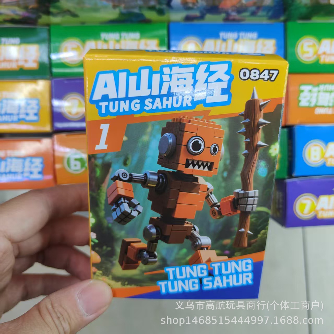 새로운 산해고전 시리즈 박스형 빌딩 블록 어린이 조립 통통 나무 막대기 만화 동물 상어 장난감스토어 가기