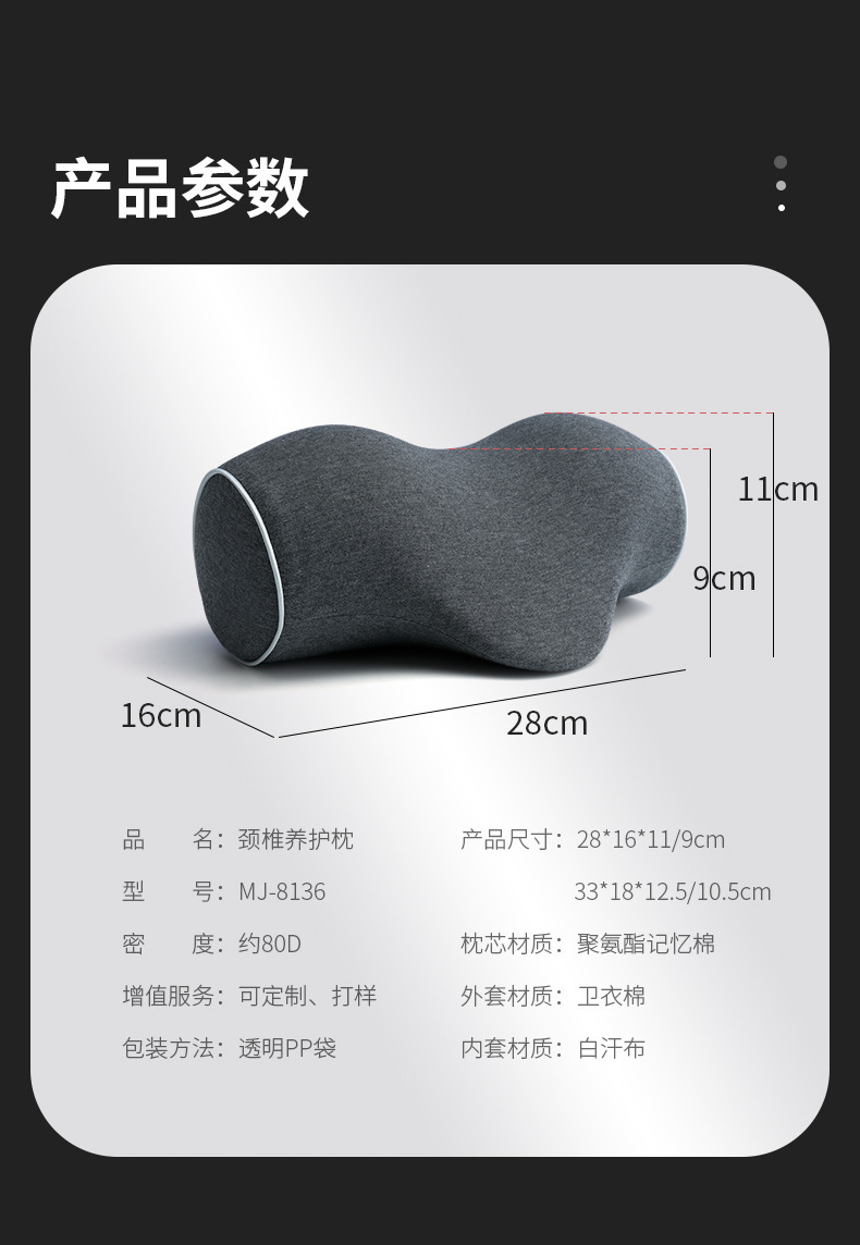 • MJ8136 휴대용 경추 베개 블랙 그레이 플러스 사이즈
