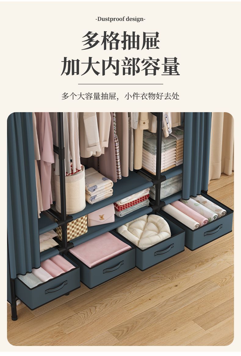 옷장 임대실 인스 스타일 심플 옷장 옷 수납장 임대실 기숙사 홈 대용량 수납장