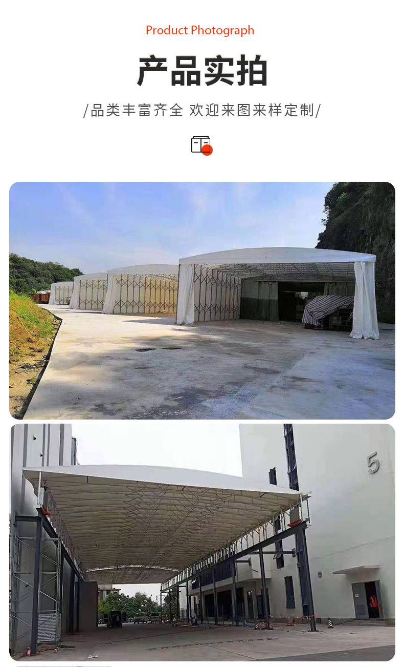 전기 슬라이딩 차양 창고 통로 개폐식 차양 트랙 농구장 차양 상하이 이동식 이벤트 차고