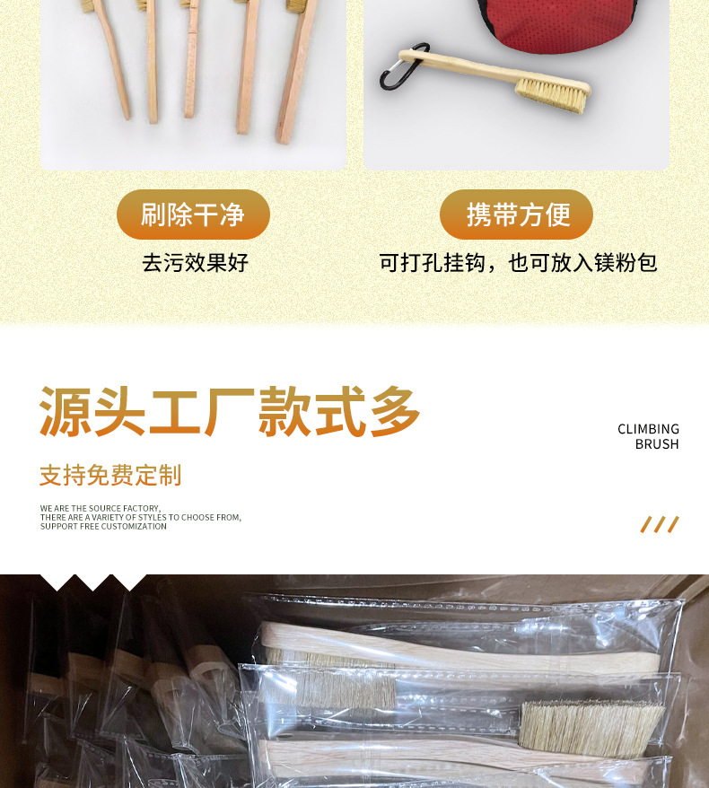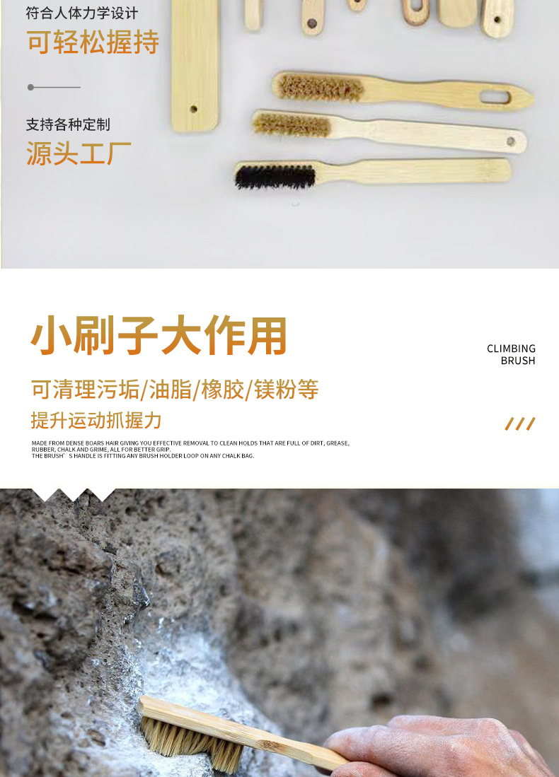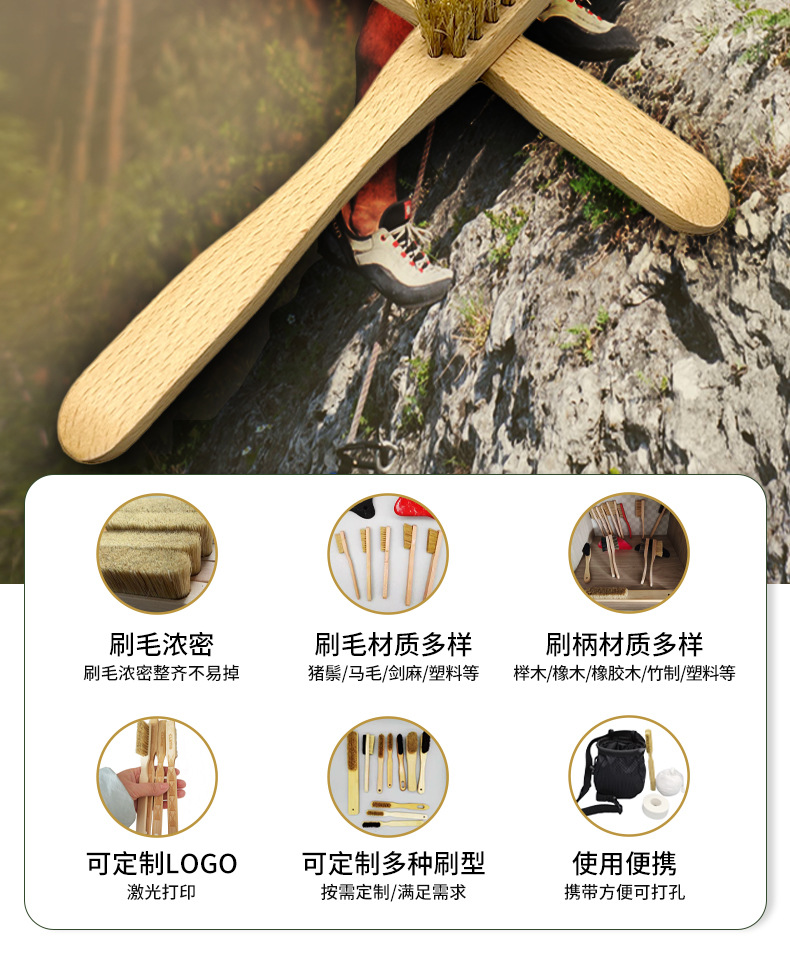 암벽등반 및 보석 클리닝 브러시, 락 포인트 마그네슘 파우더 클리닝 브러시, 너도밤나무 견고한 강모 돈모 등산 브러시, 야외 등반 장비