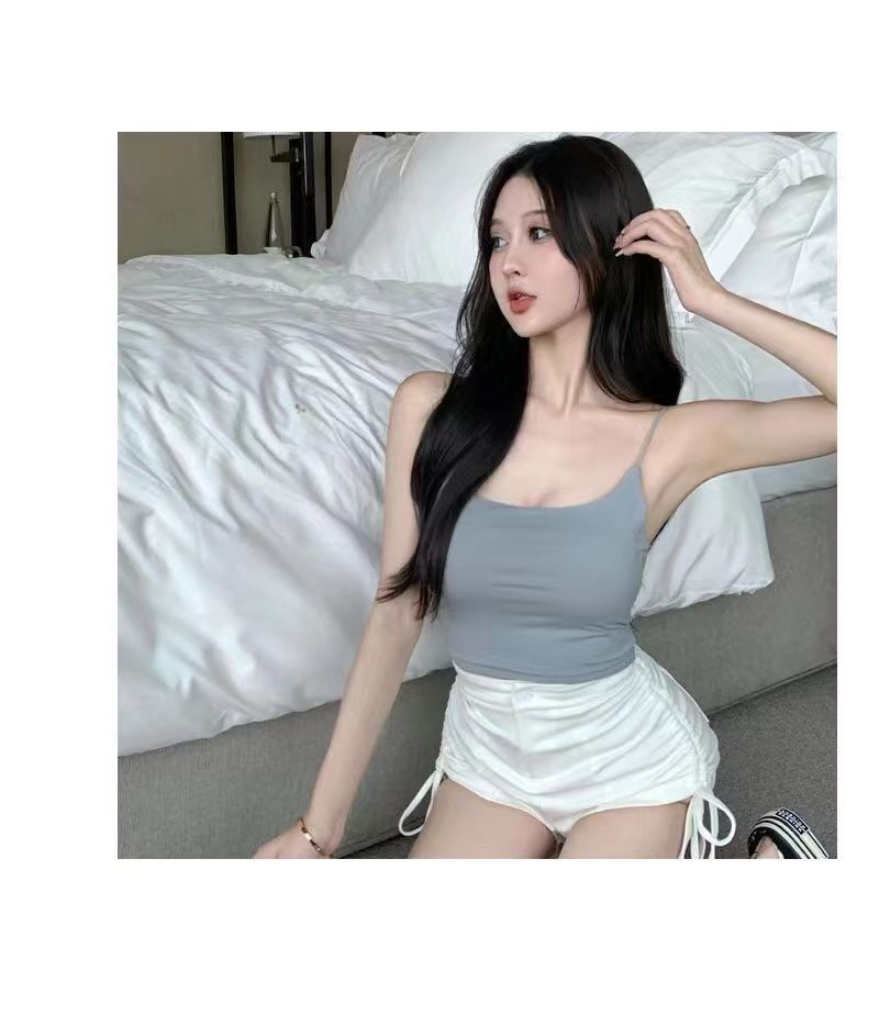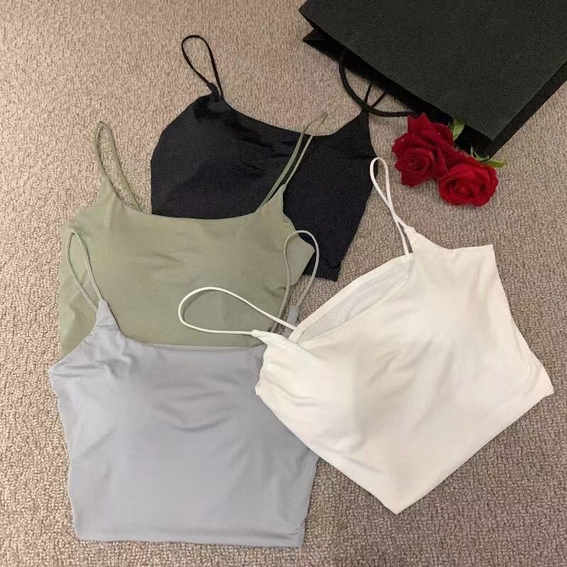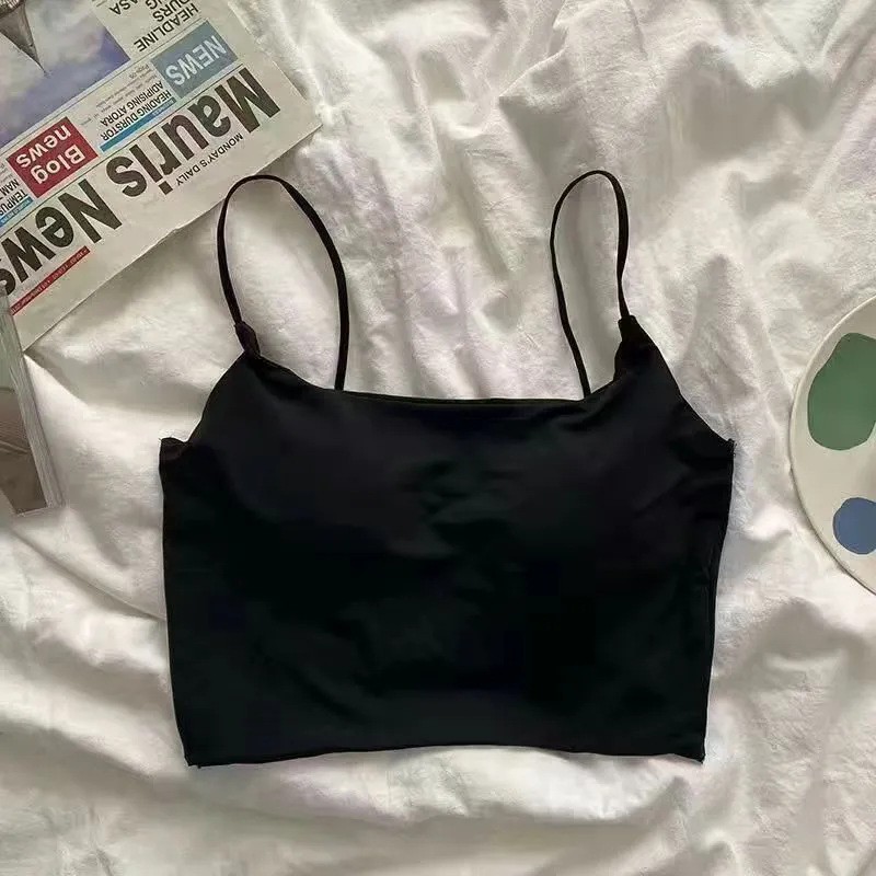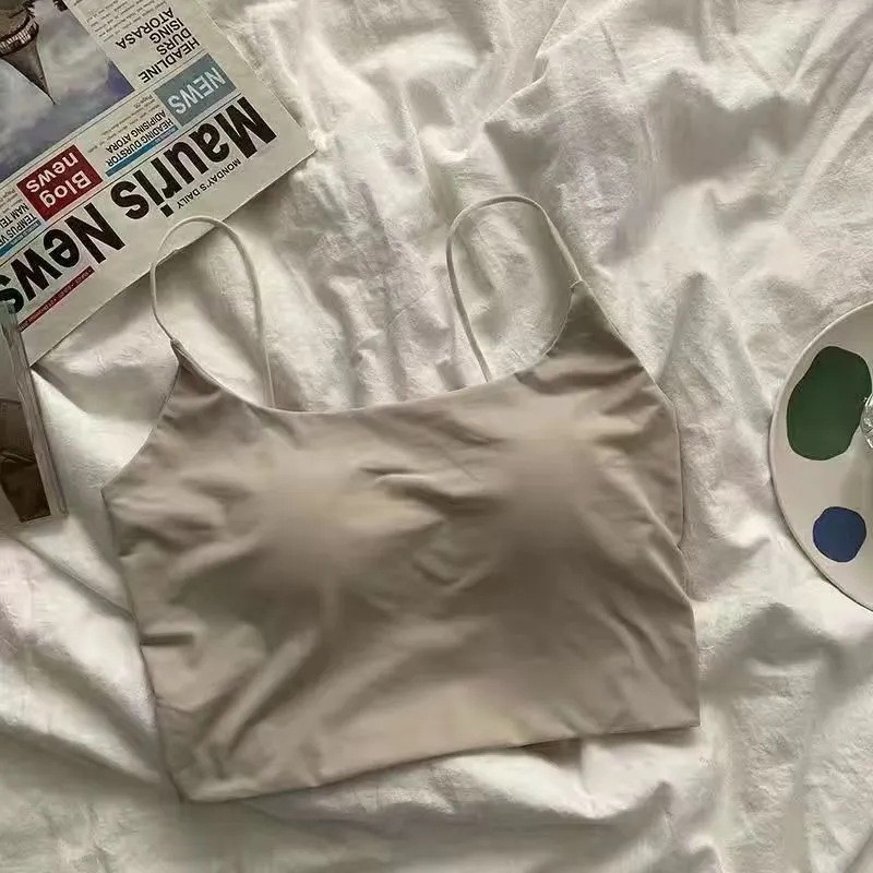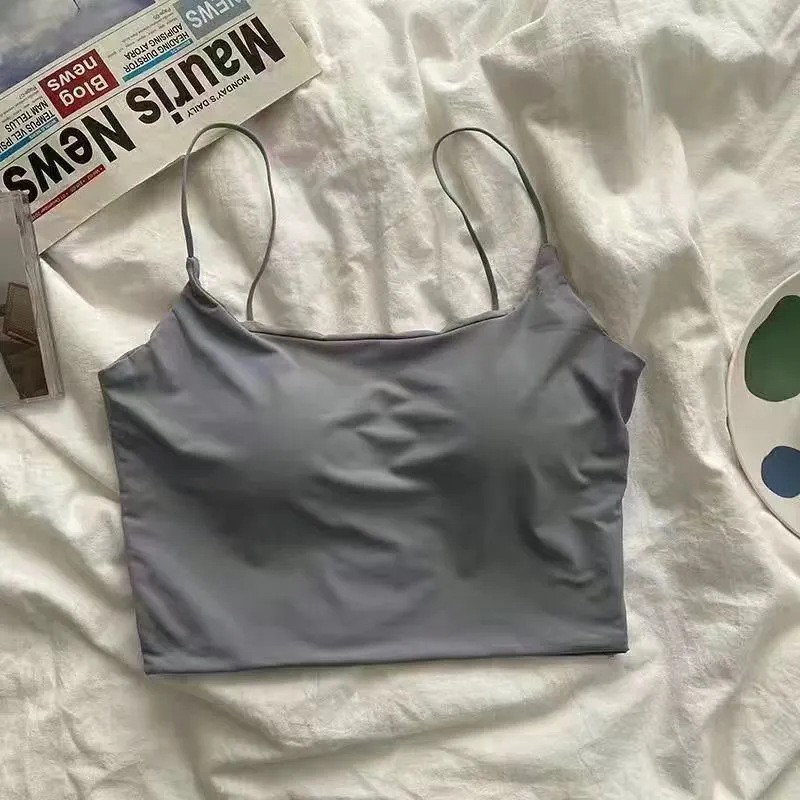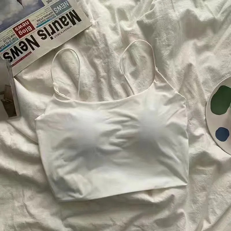 여성용 심리스 아이스 실크 캐미솔, 가슴 패드가 있는 여름 이너웨어, 짧은 일체형 통기성 아우터웨어, 아름다운 등 튜브탑 속옷스토어 가기