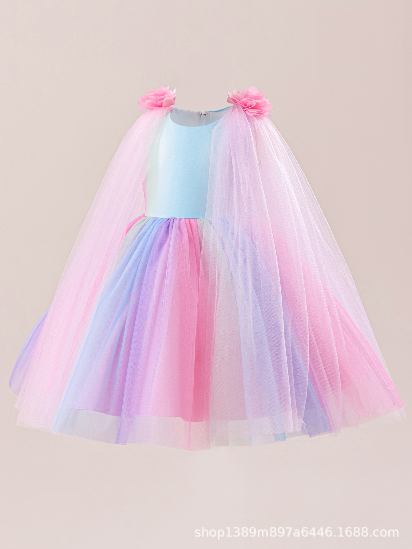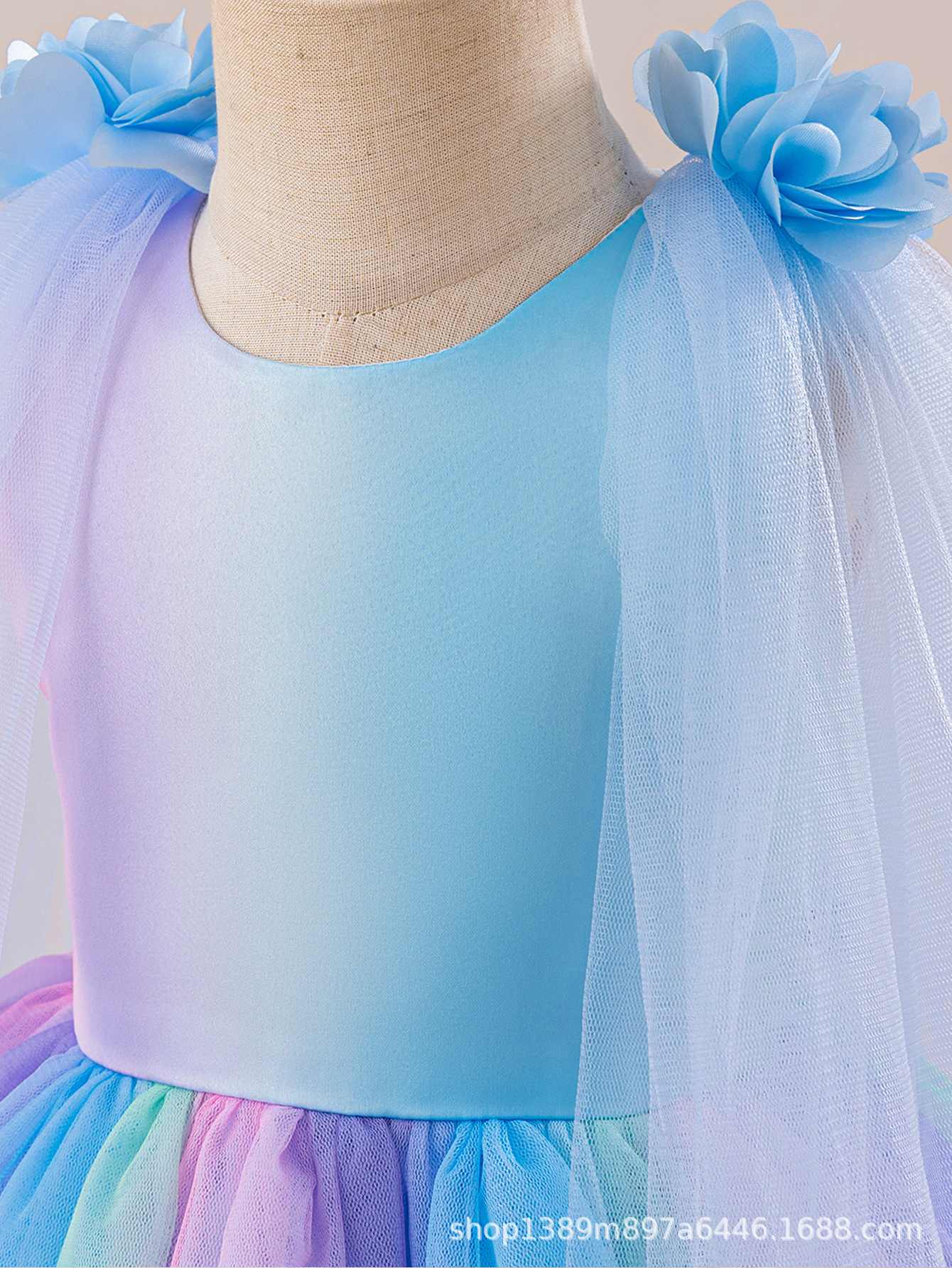 국경 간 소녀 무지개 스커트 드레스 어린이 7 색상 공연 의상 푹신한 거즈 생일 파티 꽃 소녀 드레스스토어 가기