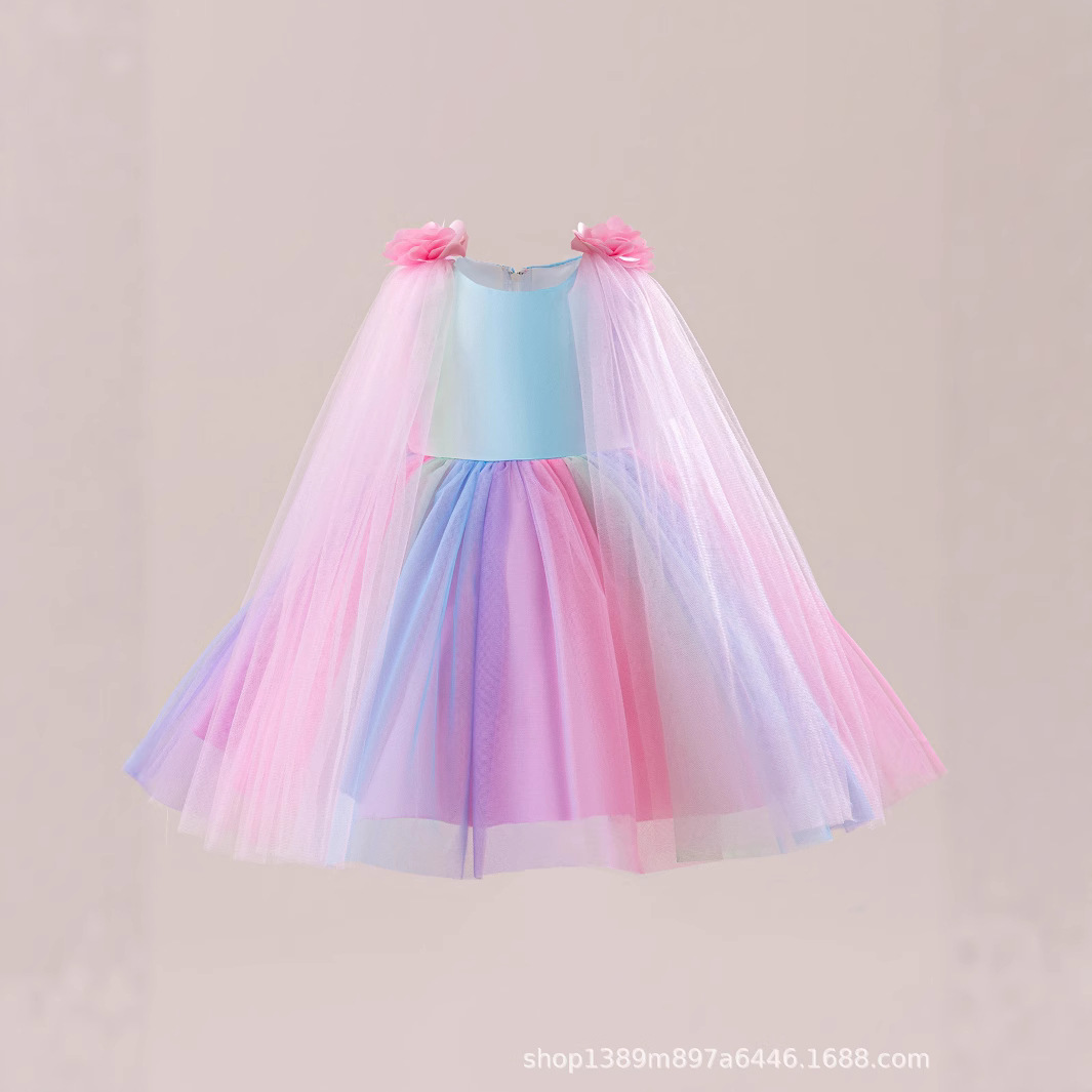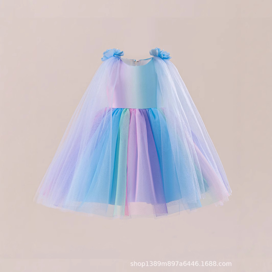 국경 간 소녀 무지개 스커트 드레스 어린이 7 색상 공연 의상 푹신한 거즈 생일 파티 꽃 소녀 드레스