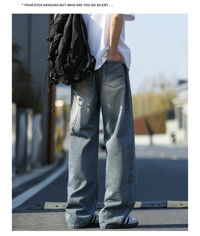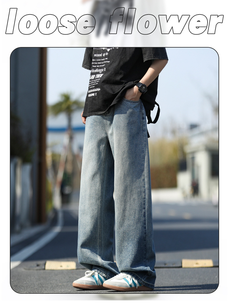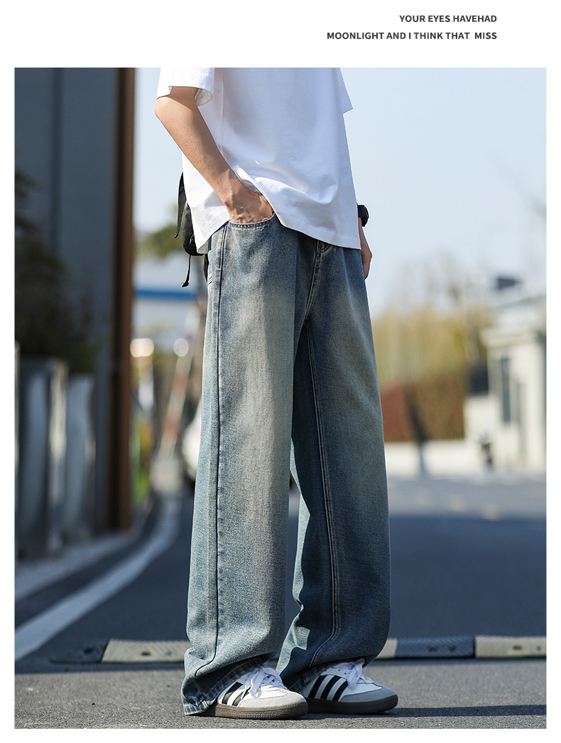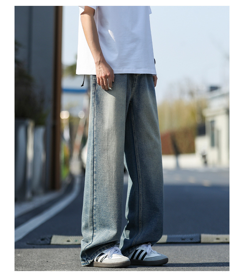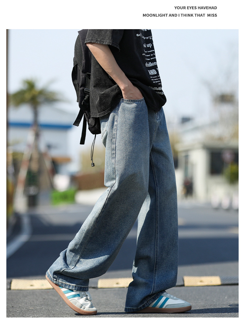 여름 얇은 남성 청바지 2025 새로운 루즈 스트레이트 트렌디 브랜드 아메리칸 레트로 워시 캐주얼 롱 팬츠스토어 가기