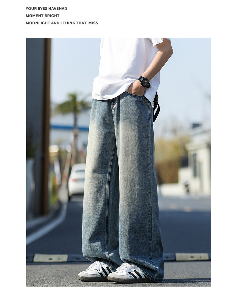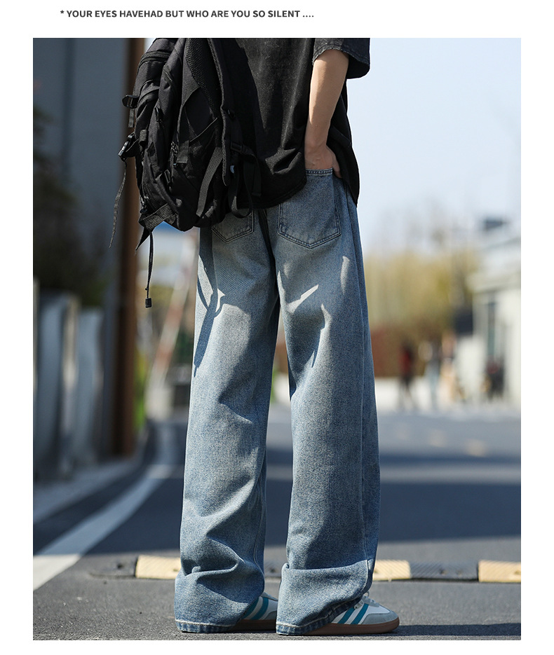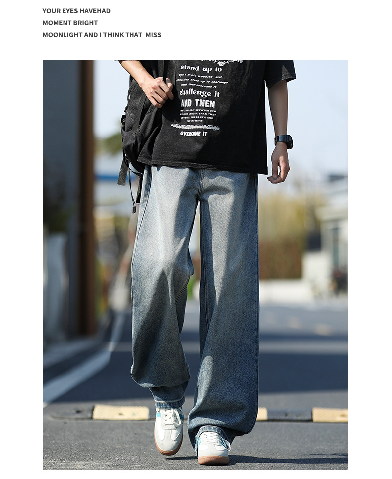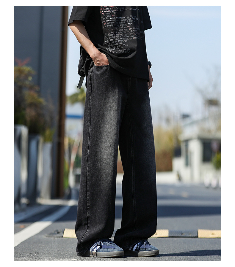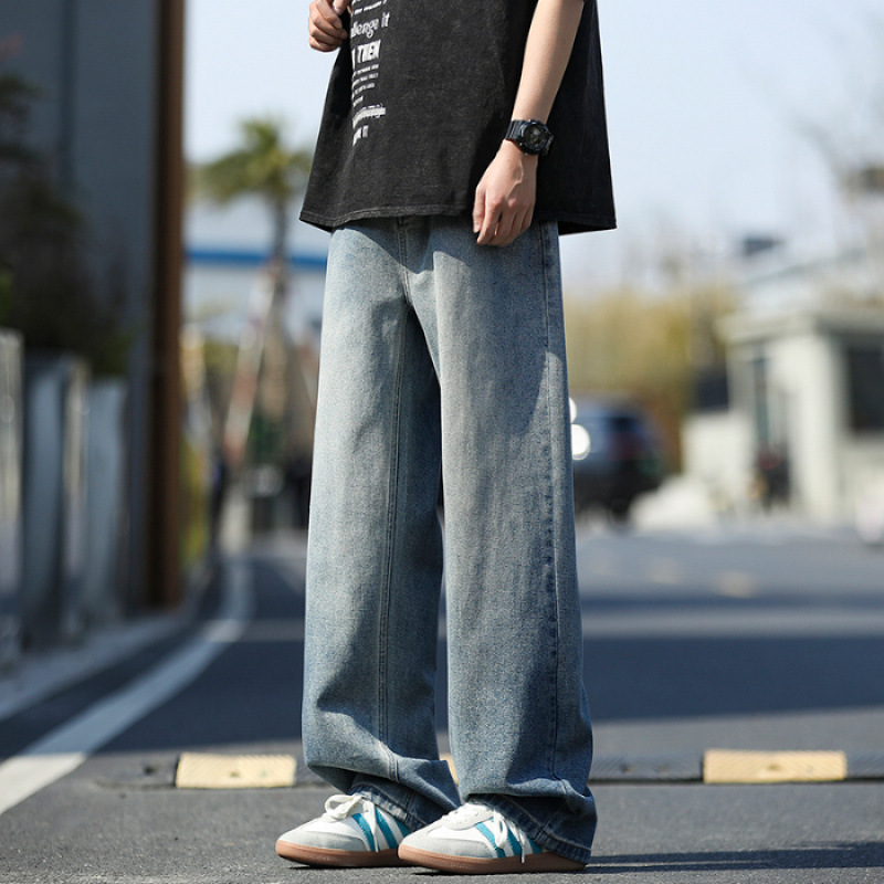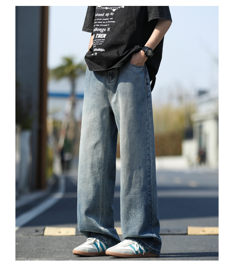 여름 얇은 남성 청바지 2025 새로운 루즈 스트레이트 트렌디 브랜드 아메리칸 레트로 워시 캐주얼 롱 팬츠스토어 가기