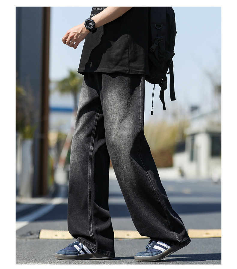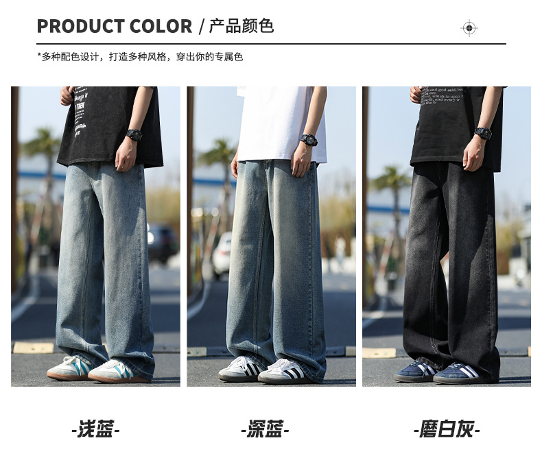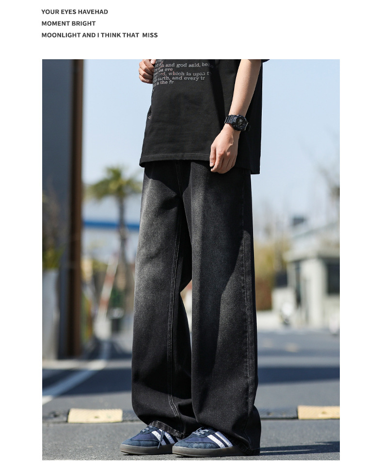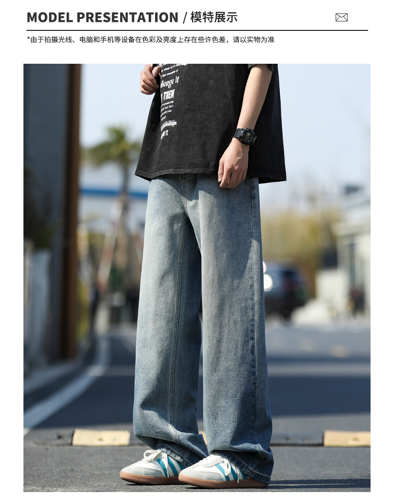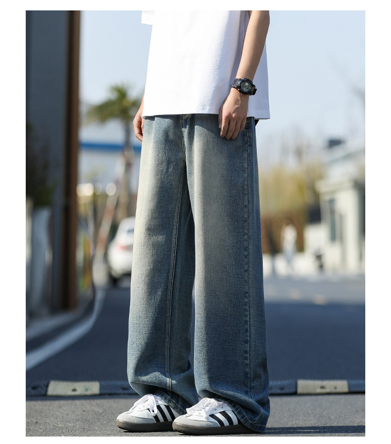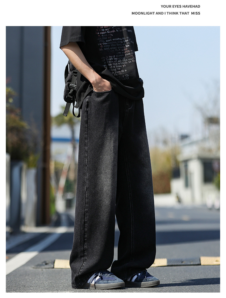 여름 얇은 남성 청바지 2025 새로운 루즈 스트레이트 트렌디 브랜드 아메리칸 레트로 워시 캐주얼 롱 팬츠스토어 가기