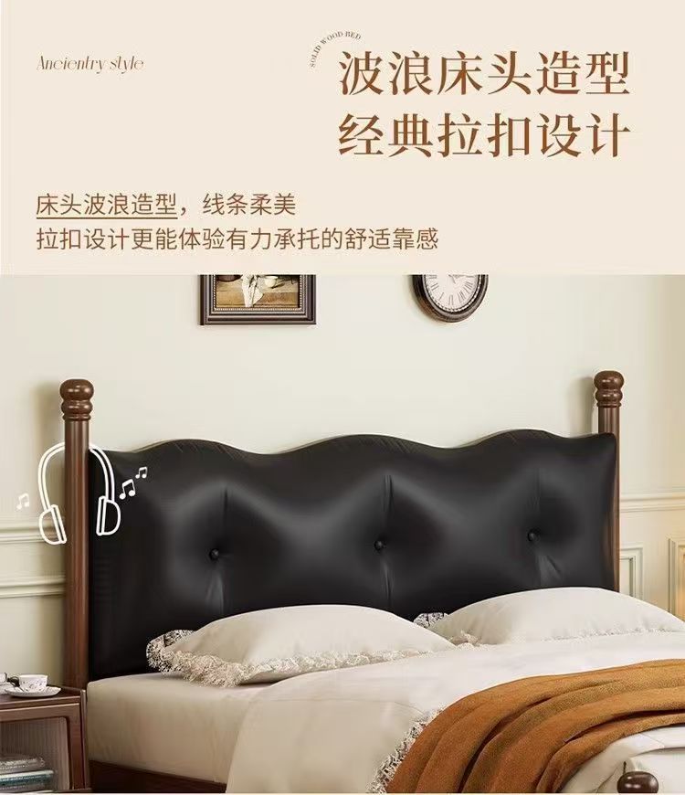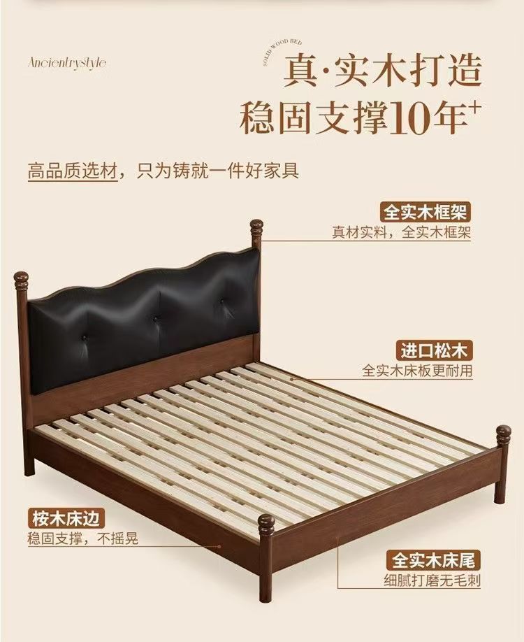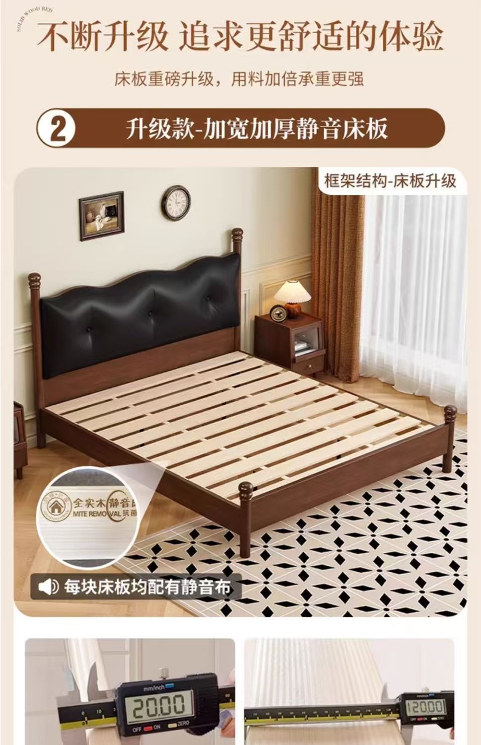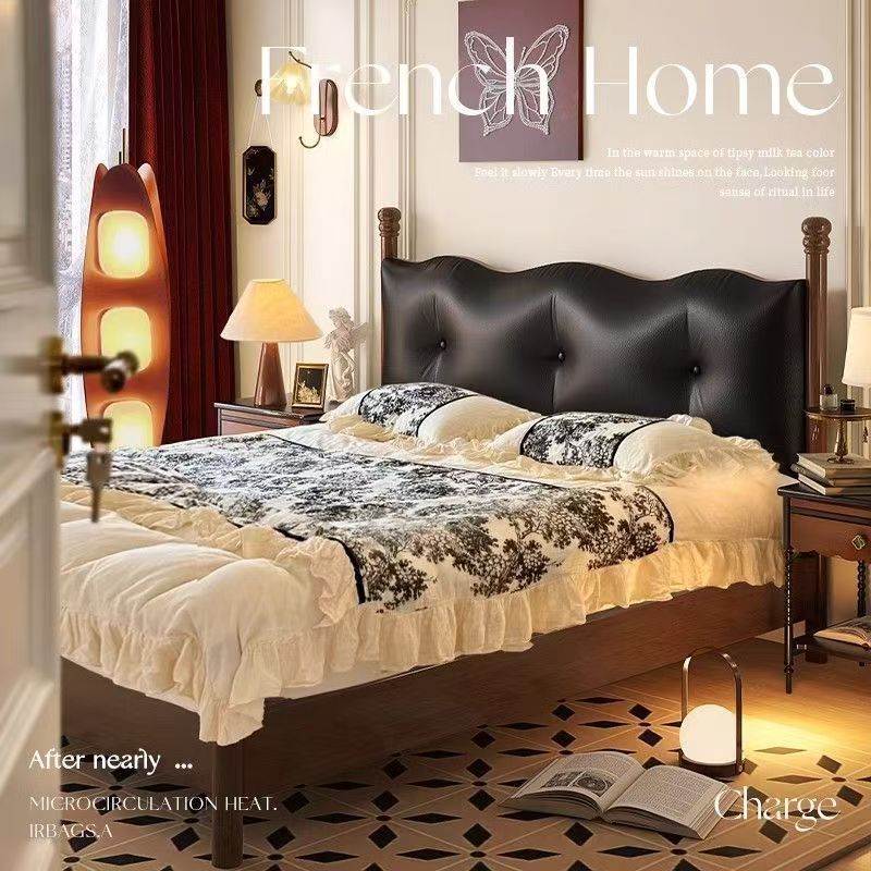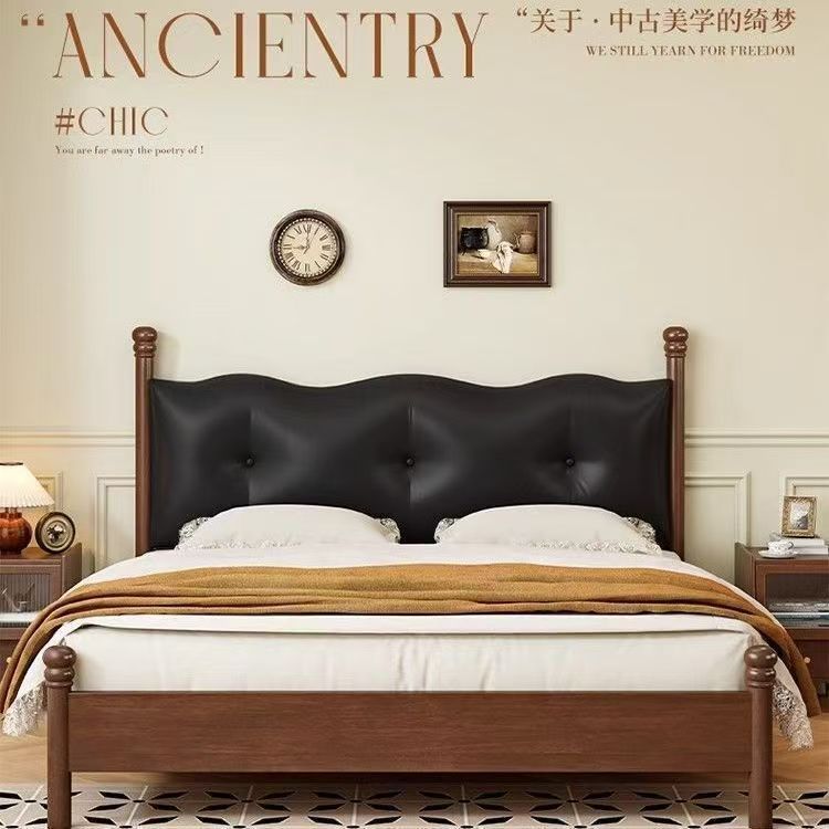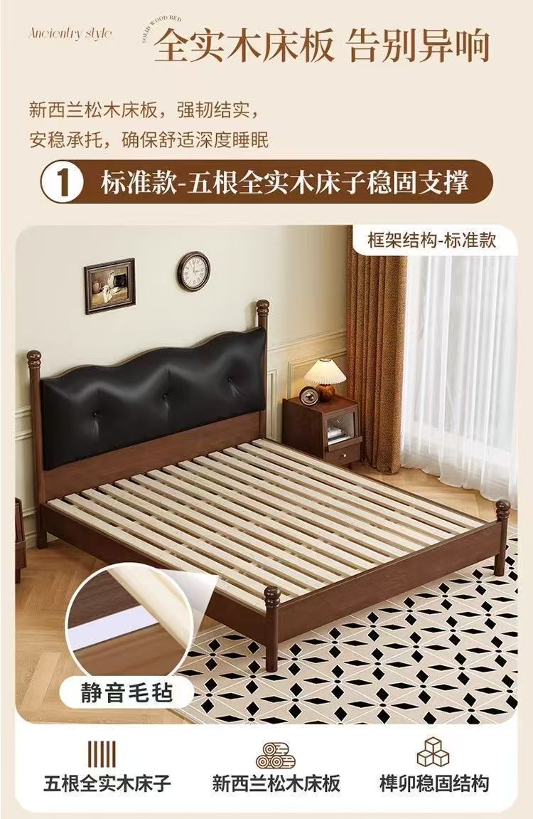 북유럽 침대 원목 골동품 원목 침대 1.8 더블 침대 작은 아파트 모던 1.5 프렌치 레트로 패키지 마스터 침실 심플