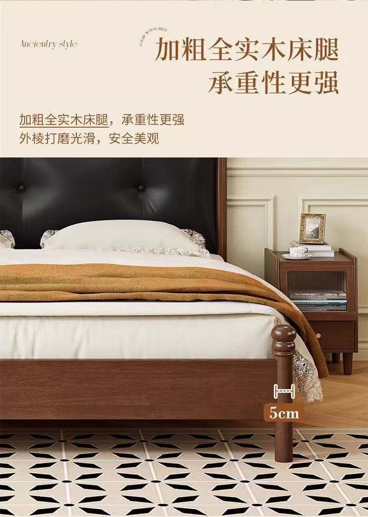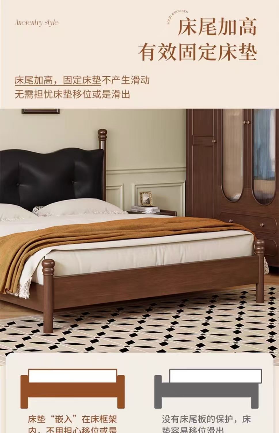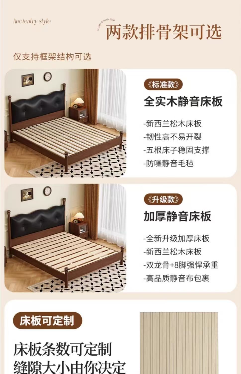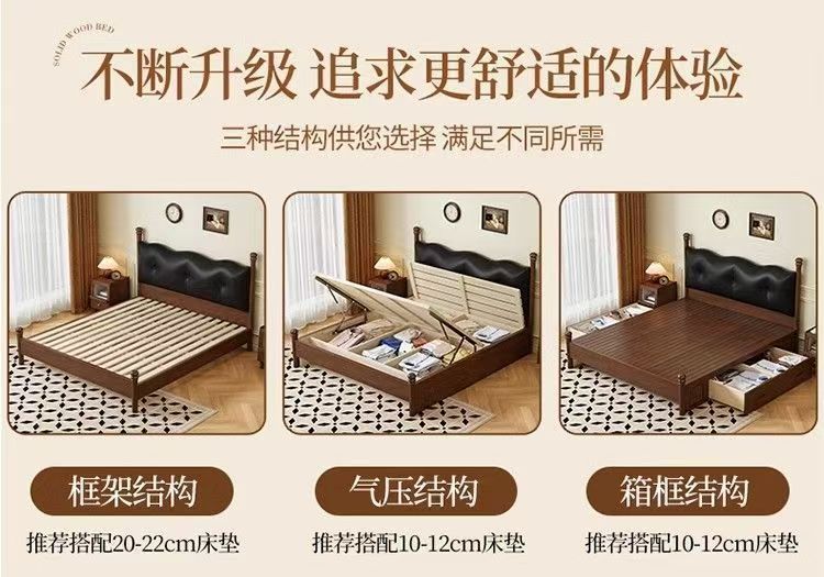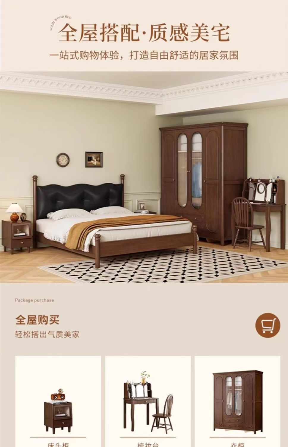 북유럽 침대 원목 골동품 원목 침대 1.8 더블 침대 작은 아파트 모던 1.5 프렌치 레트로 패키지 마스터 침실 심플