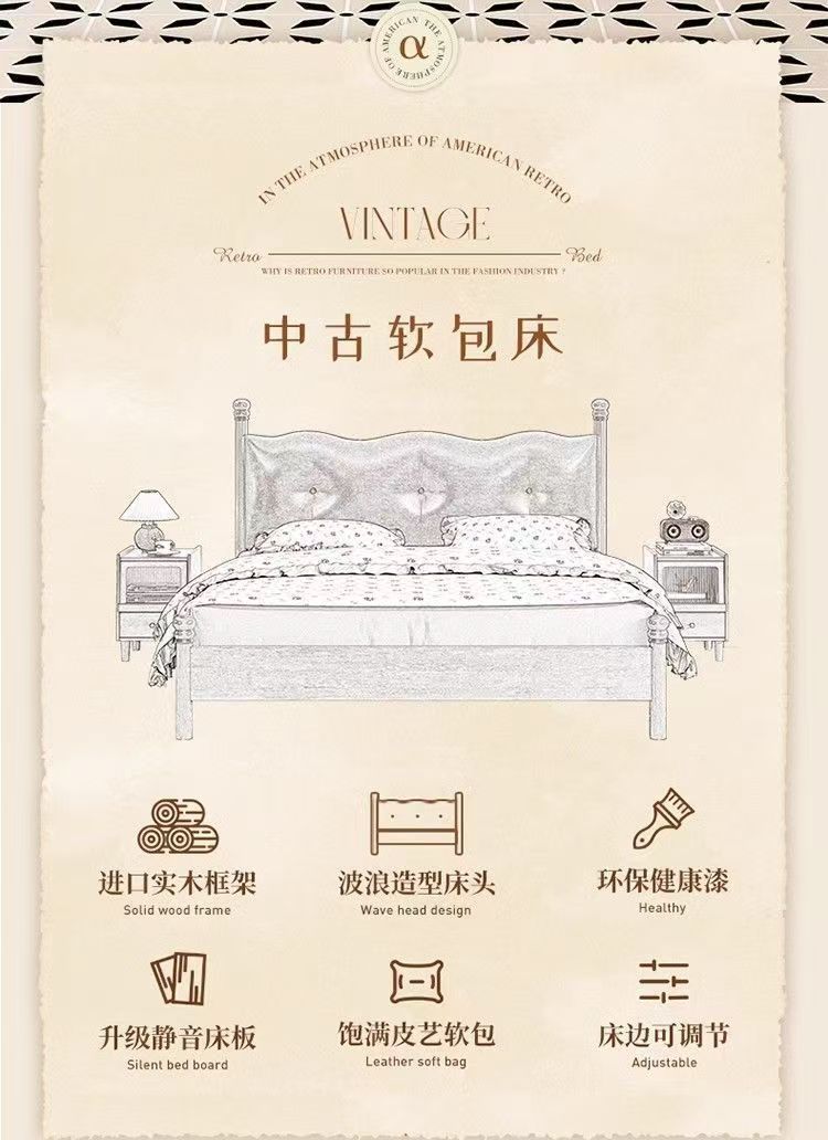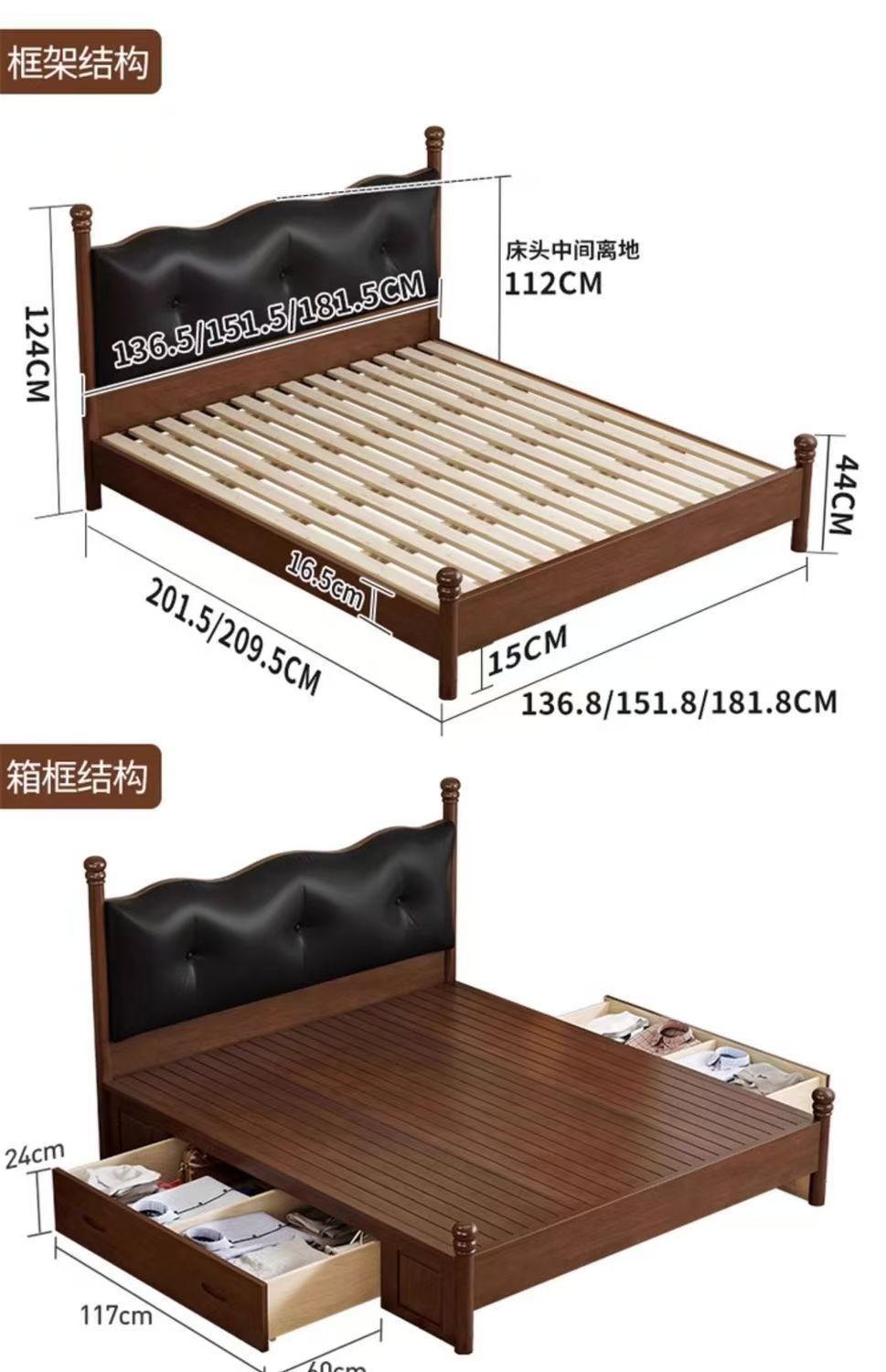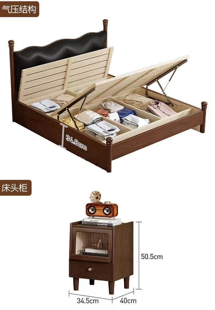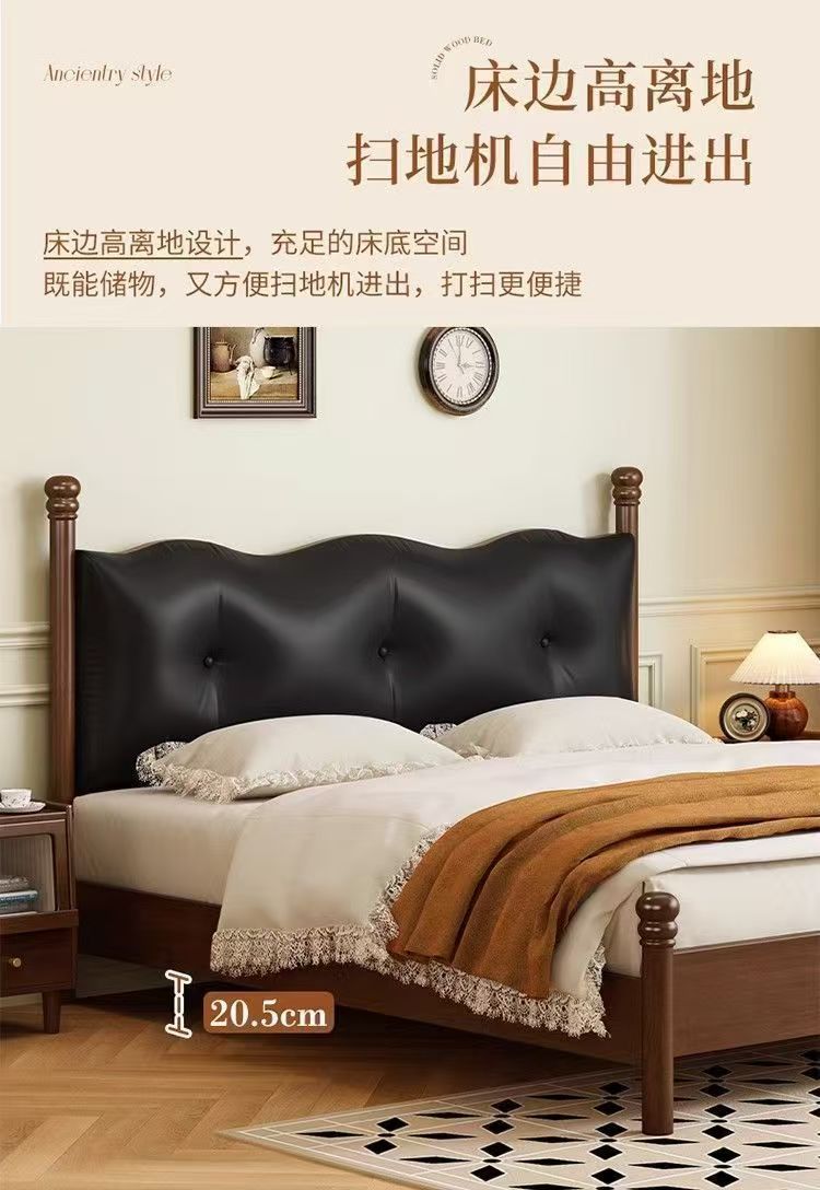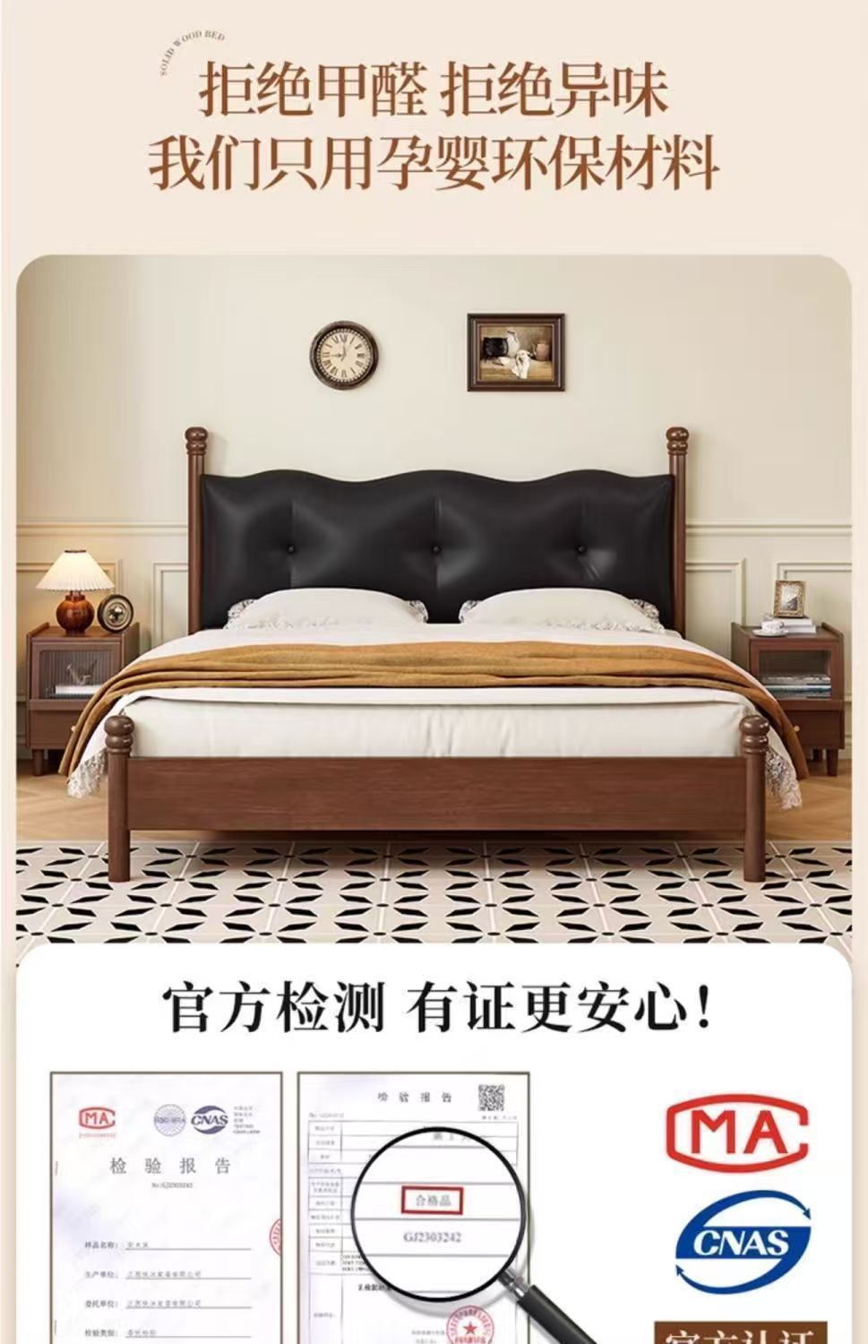 북유럽 침대 원목 골동품 원목 침대 1.8 더블 침대 작은 아파트 모던 1.5 프렌치 레트로 패키지 마스터 침실 심플