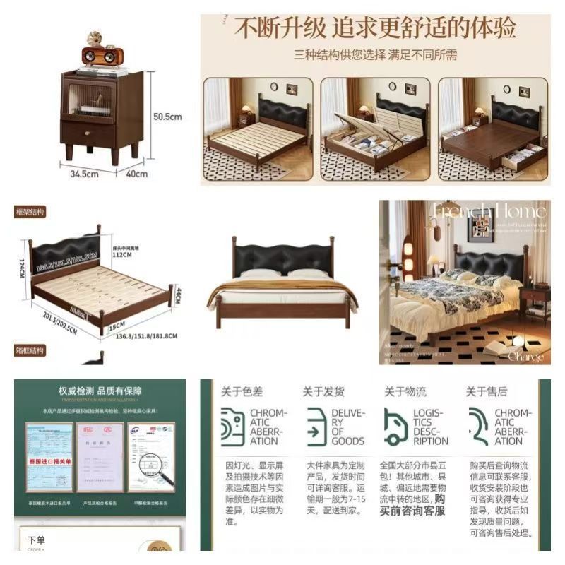 북유럽 침대 원목 골동품 원목 침대 1.8 더블 침대 작은 아파트 모던 1.5 프렌치 레트로 패키지 마스터 침실 심플스토어 가기