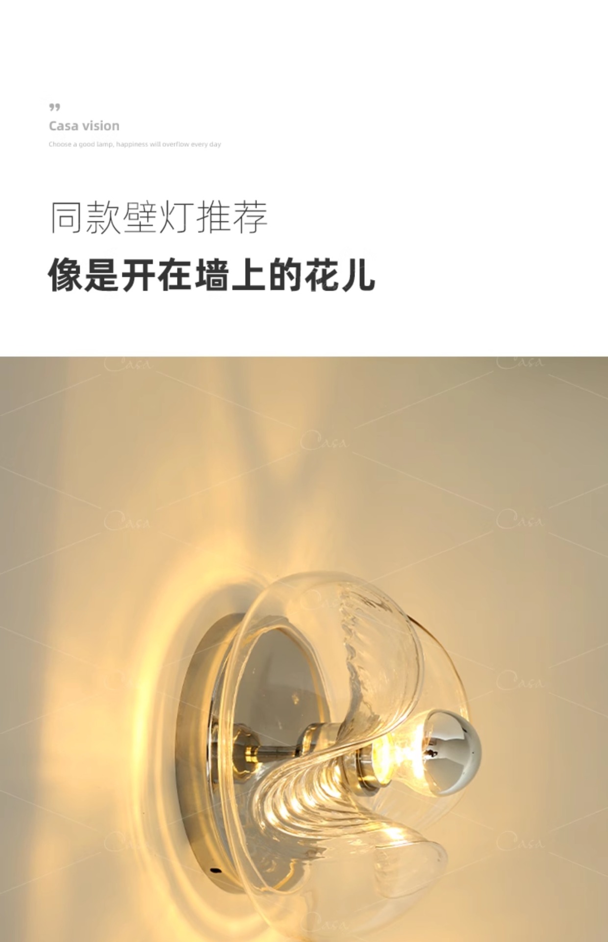 • 벽등 - 유선형 - 26cm - 투명 전등갓 + 크롬 천장판