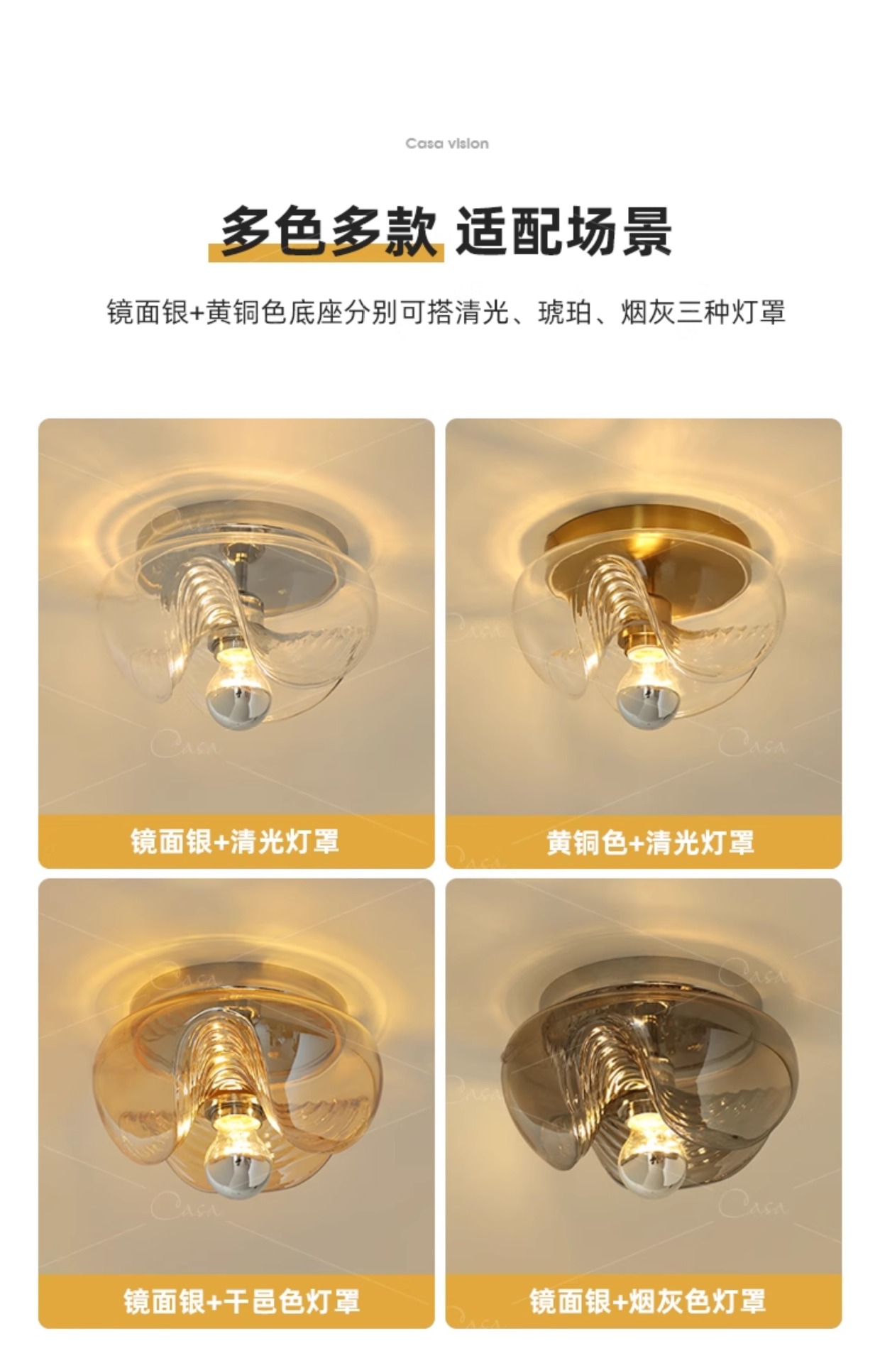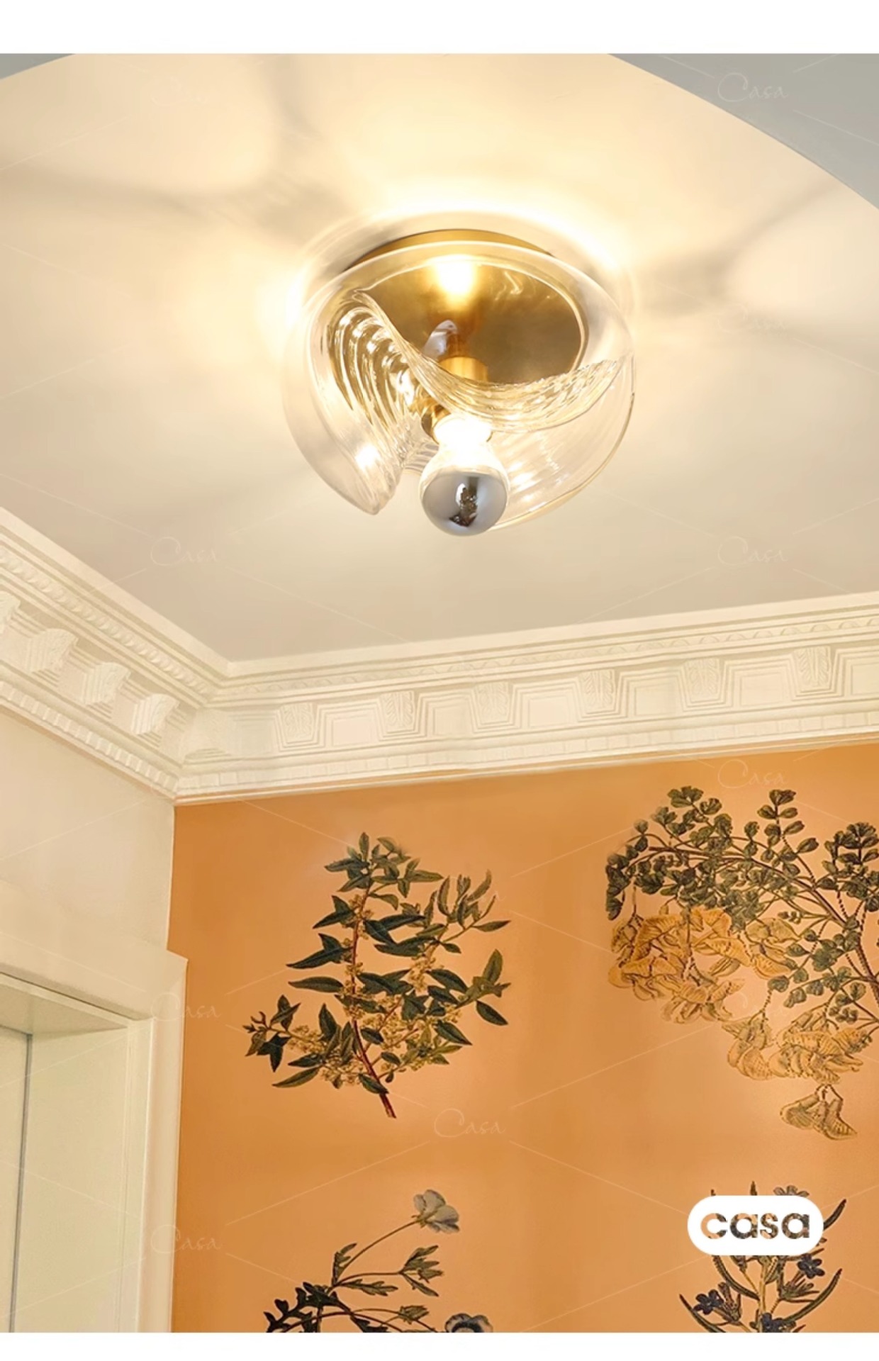 • 벽등 - 유선형 - 26cm - 호박색 전등갓 + 크롬 천장판