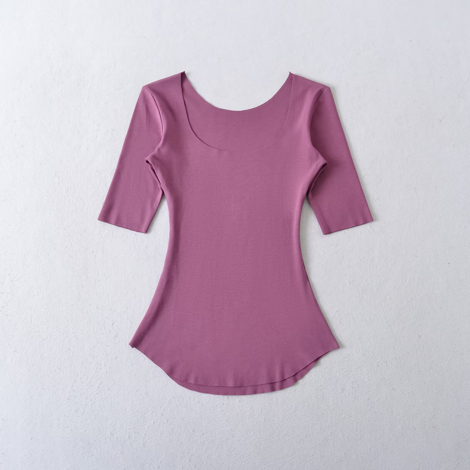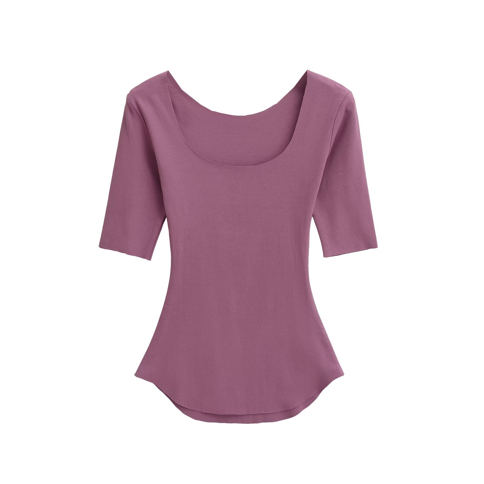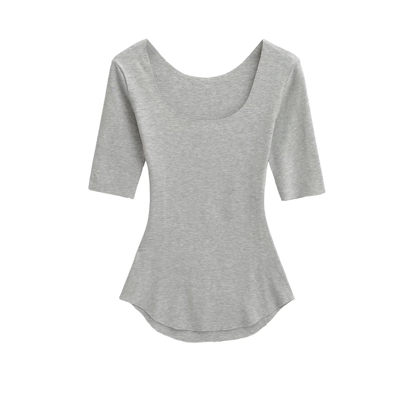 2025 여름 순수한 욕망 스타일 섹시 슬리밍 빅 U 넥 마스크 T 바디 쉐이핑 미드 슬리브 탑 베이스스토어 가기