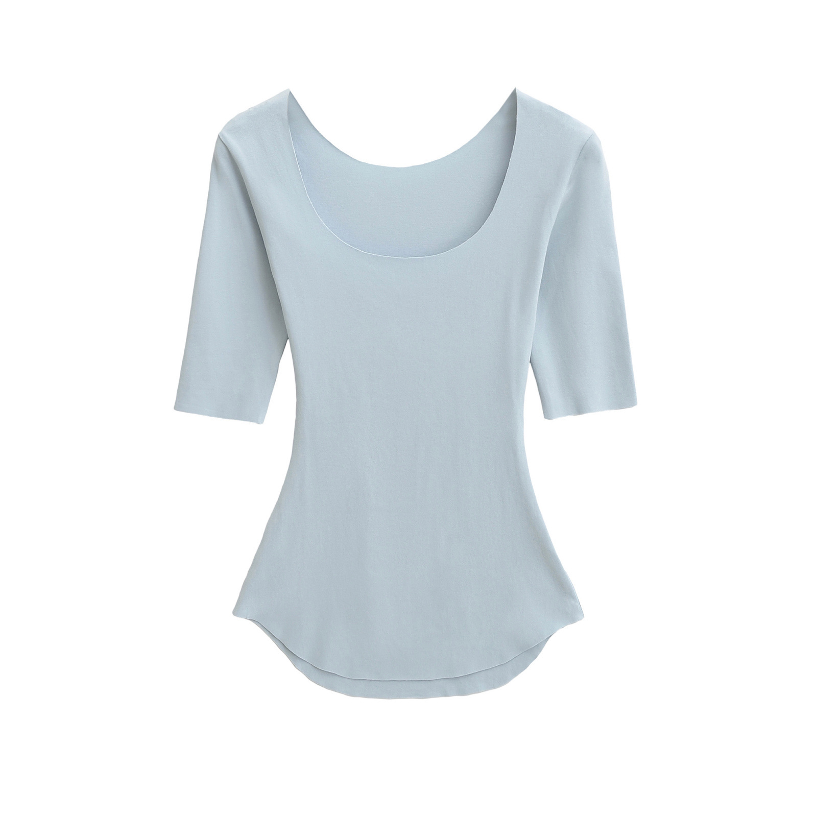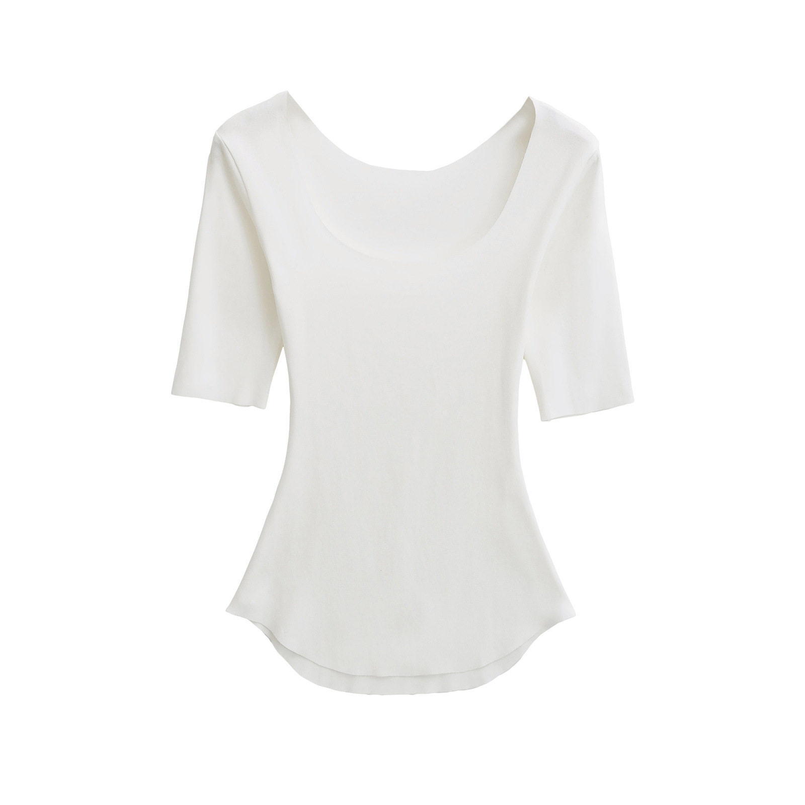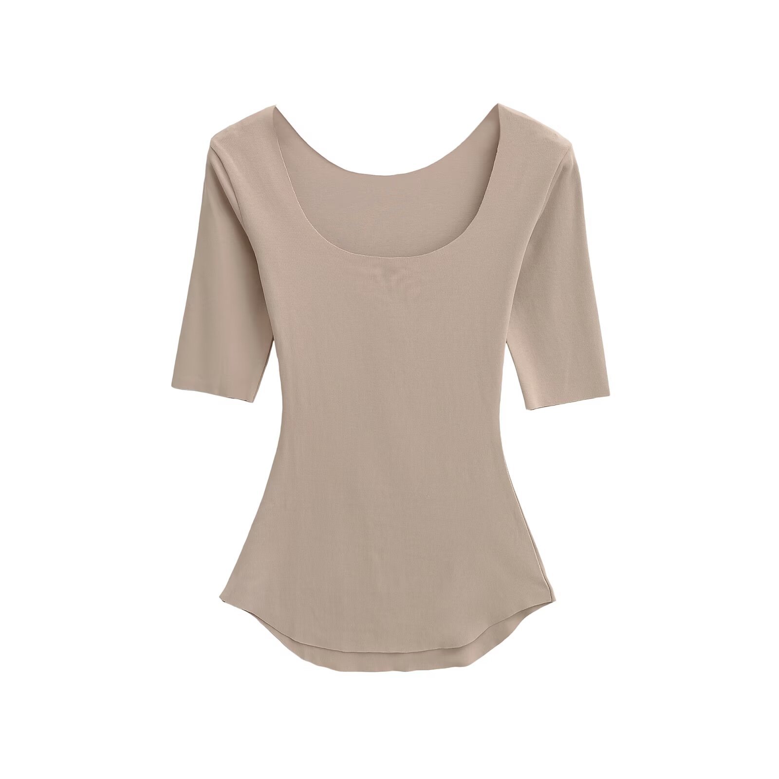 2025 여름 순수한 욕망 스타일 섹시 슬리밍 빅 U 넥 마스크 T 바디 쉐이핑 미드 슬리브 탑 베이스